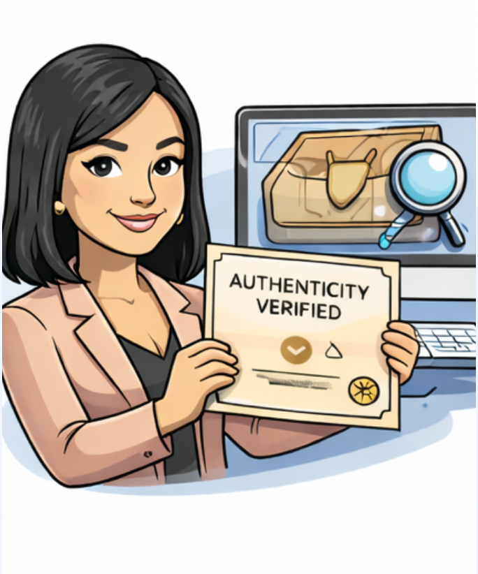 Technology-based tools such as Entrupy analyze microscopic details using AI for added verification. Each item then undergoes a final senior authenticator review before approval, and certification is issued when applicable.