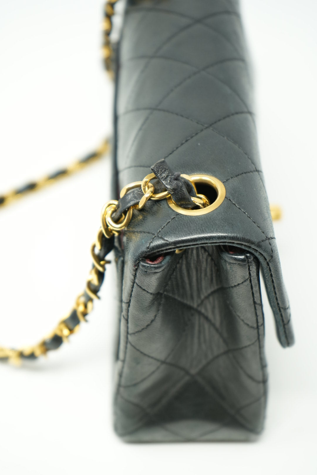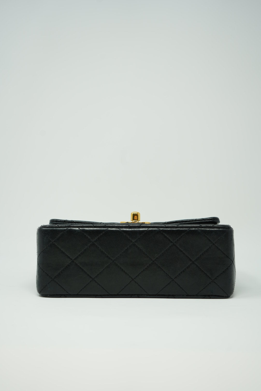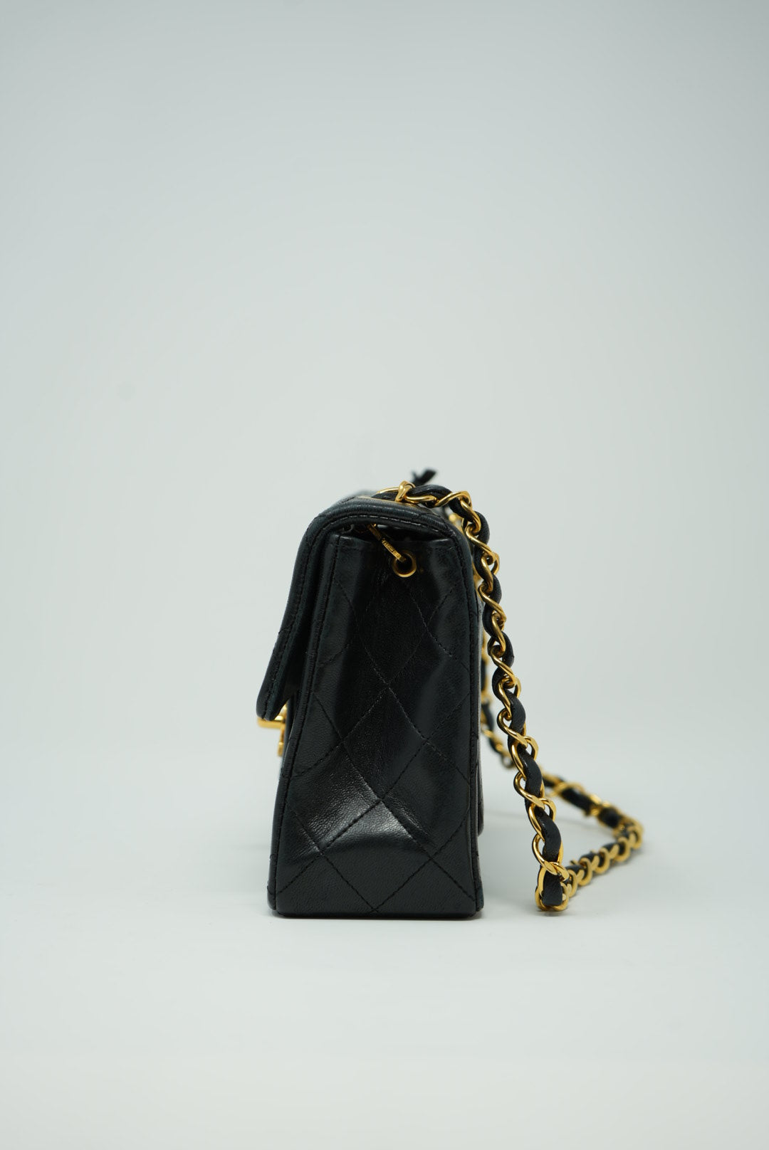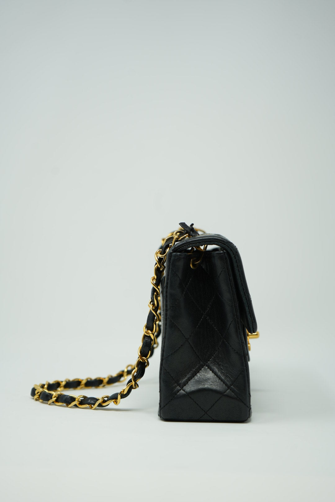 Pre-Owned Chanel 1989-1991 Mini Square Short Chain HandBag Black Lambskin