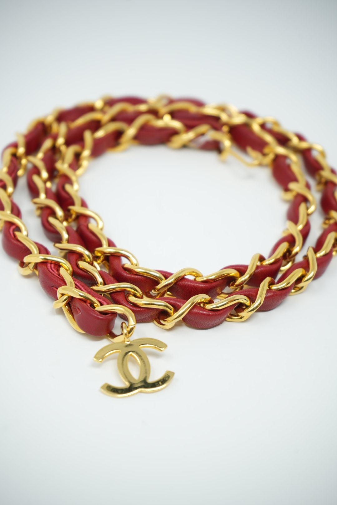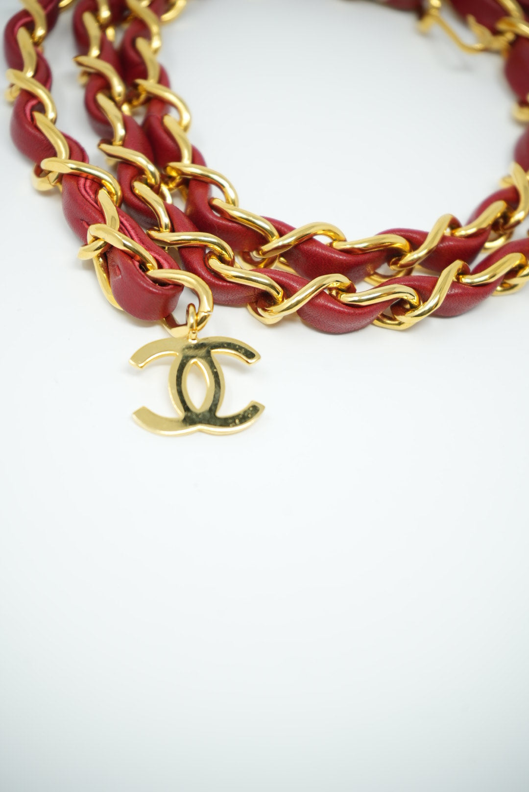 Pre-Owned CHANEL Medallion Gold Red Chain Belt Leather