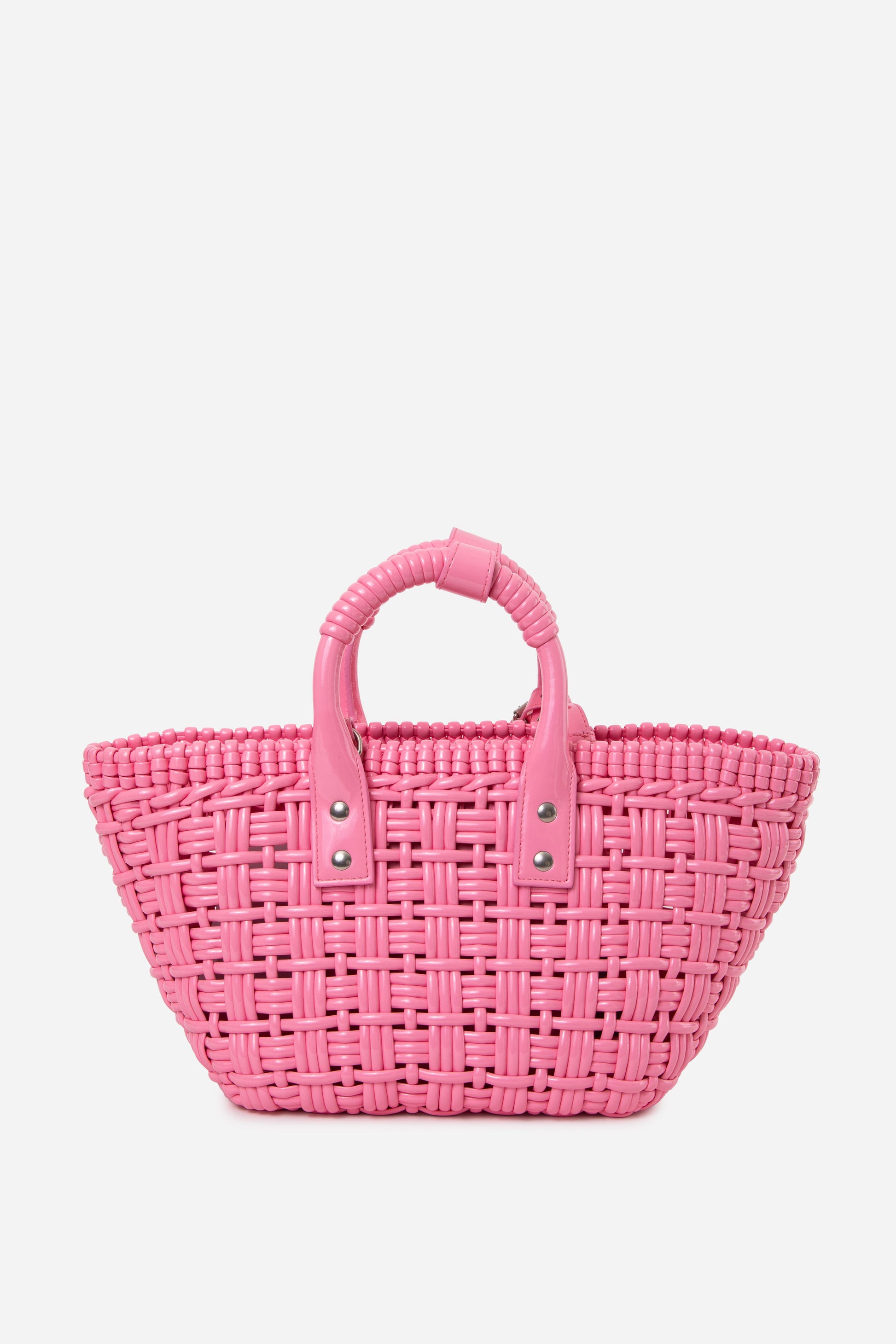 Discover this Balenciaga Bistro Basket Handbag in pink, featuring a structured basket silhouette with top handles and an adjustable shoulder strap for versatile carry. The bag is in excellent condition, remaining clean inside and out with only light signs of use. Comes with strap and an Entrupy Certificate of Authenticity.