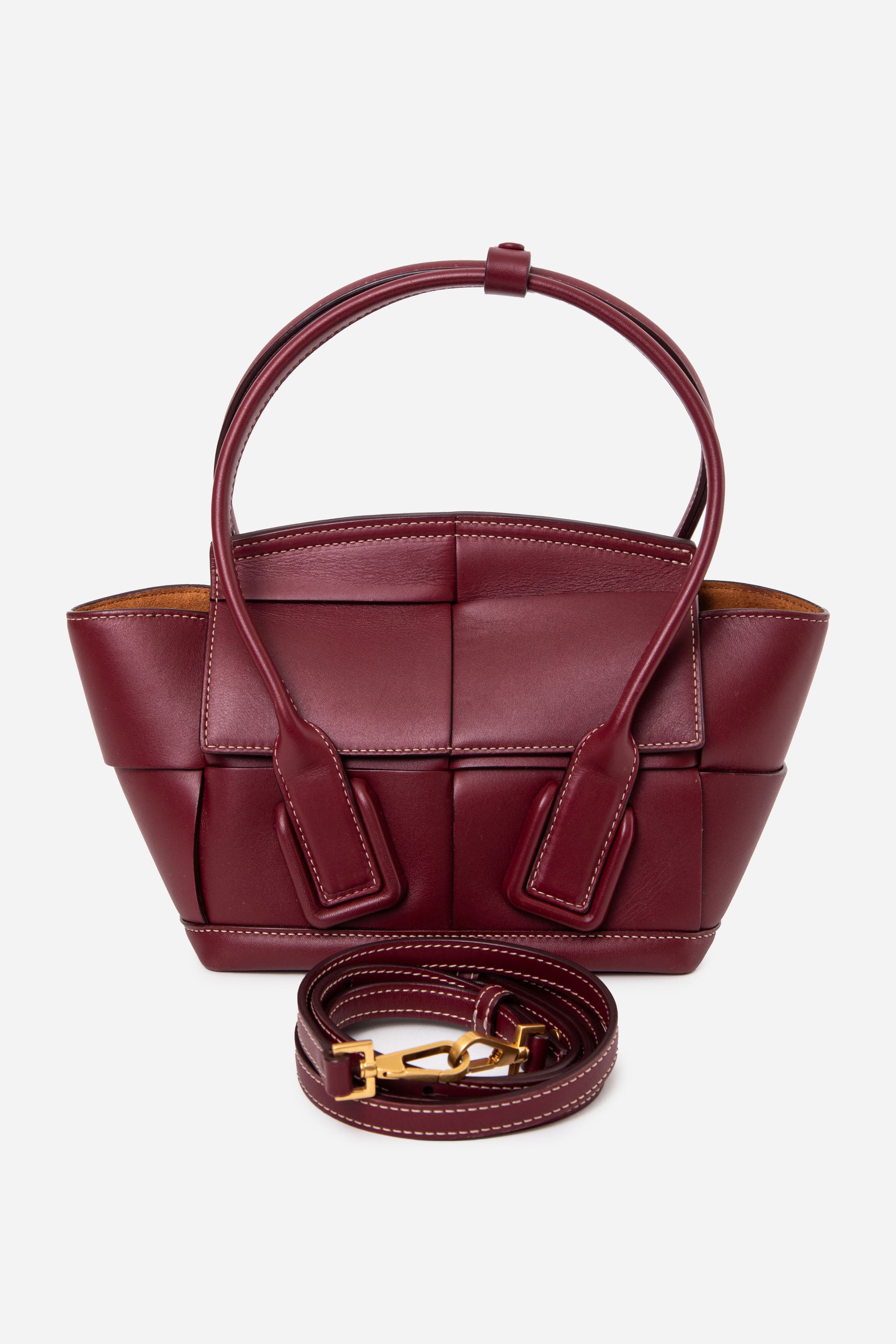 Bottega Veneta Burgundy Calfskin Mini Maxi Intrecciato Arco Shoulder Bag