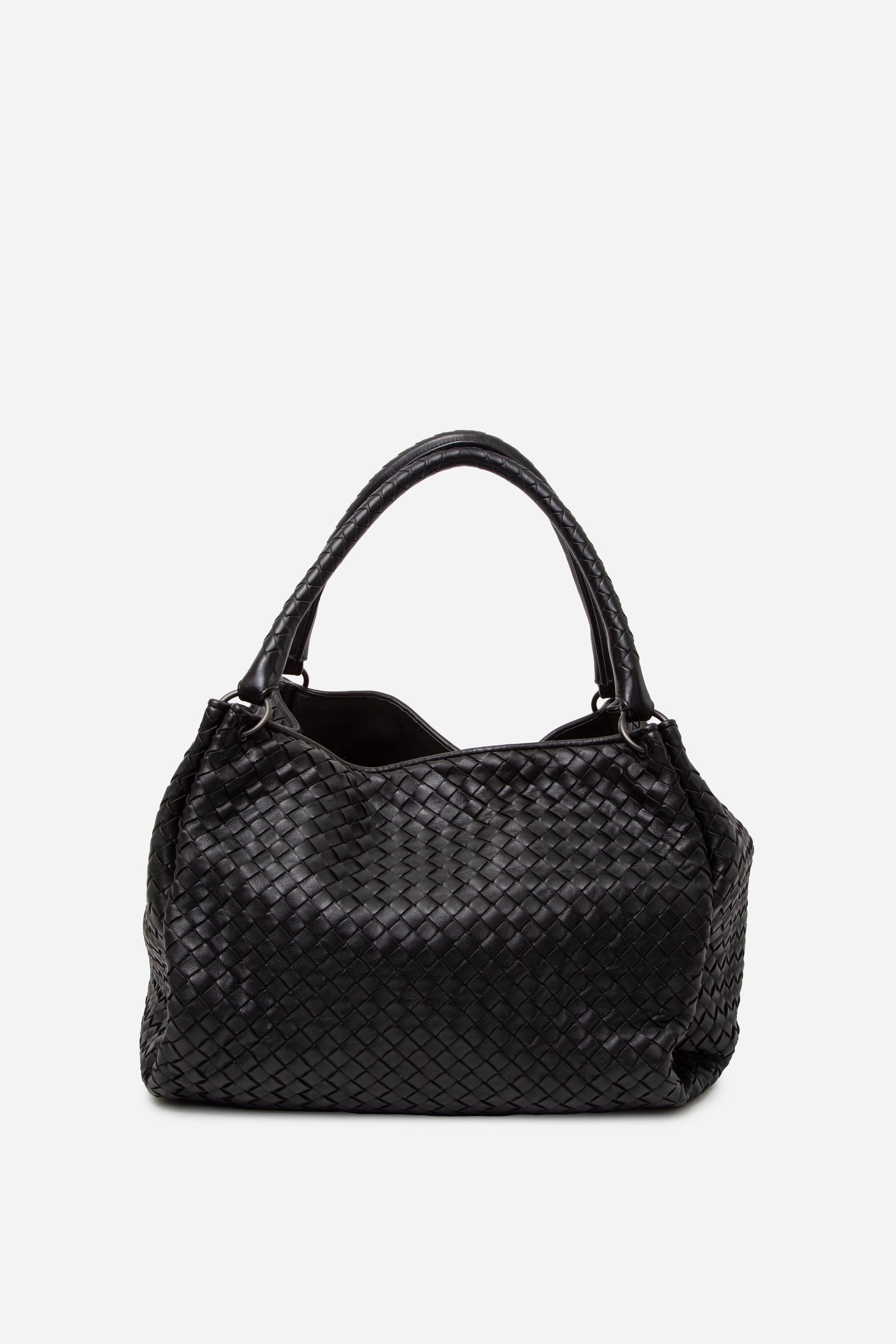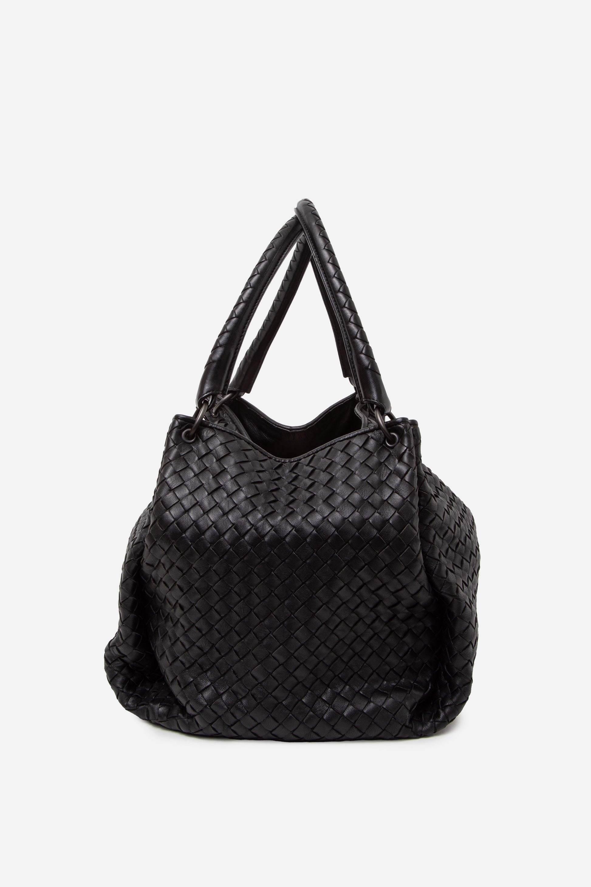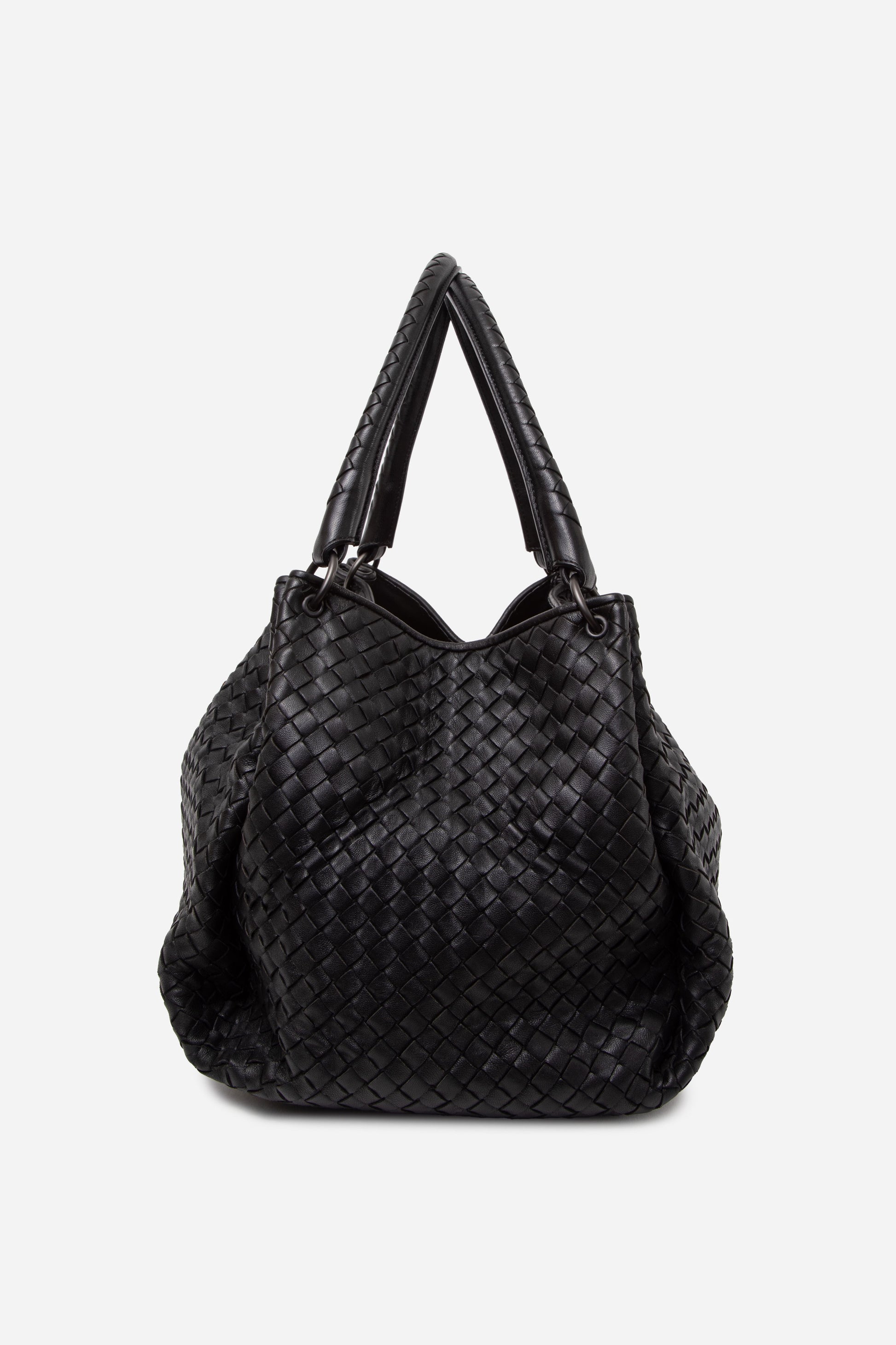 Discover the Bottega Veneta Parachute Bag in classic Black Nappa Intrecciato leather, prized for its soft, supple finish and signature woven design. The exterior shows light signs of use, and the interior is clean with only minor marks, making it an elegant everyday bag and a highly sought-after classic.