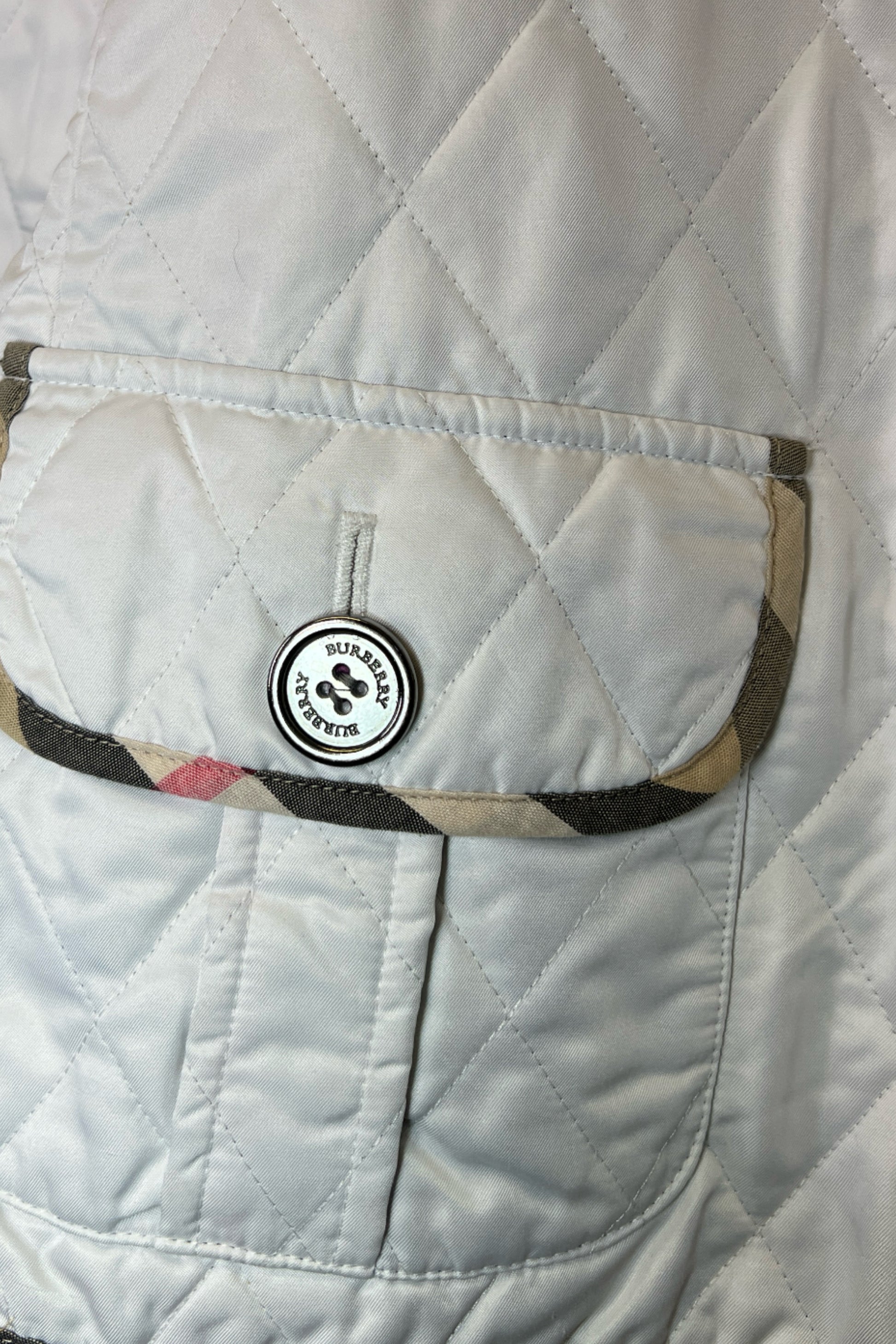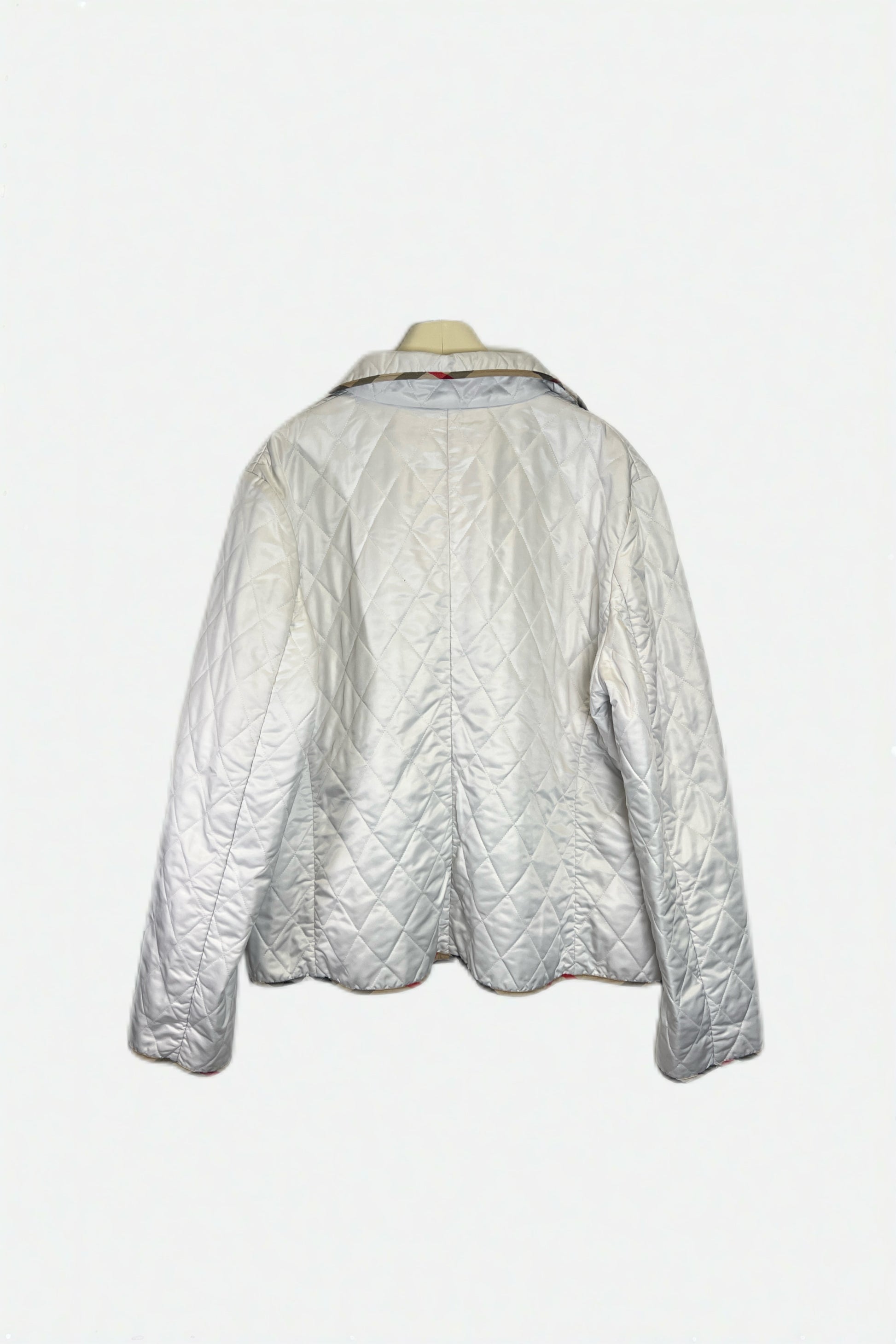 The jacket shows signs of wear, with creases on the exterior and interior lining. -Minor loose threads on the shoulders and left Sleeve A small black spot below the right pocket. |