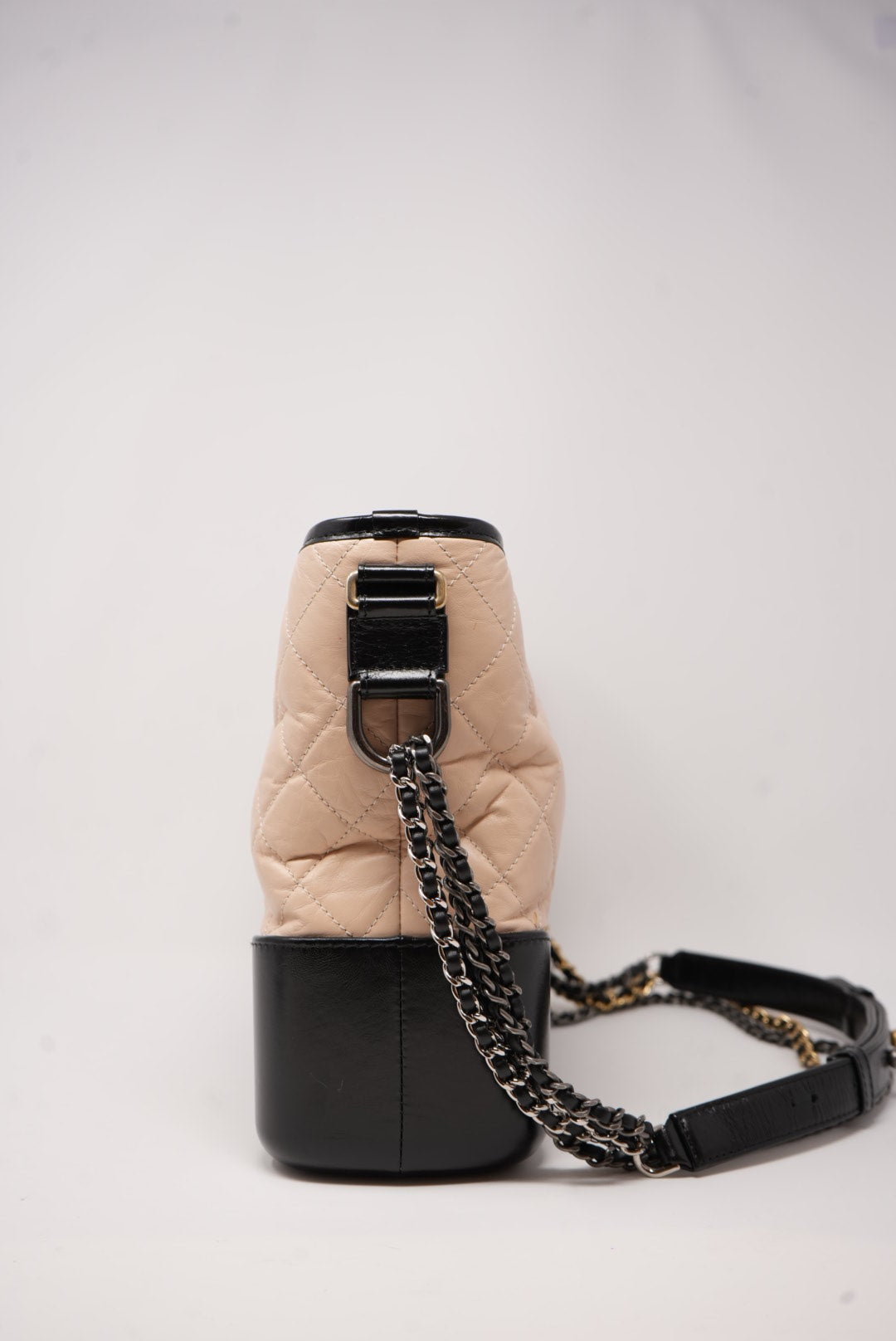 Pre-Owned Chanel 2018-2019 Gabrielle Hobo Medium Beige/Black