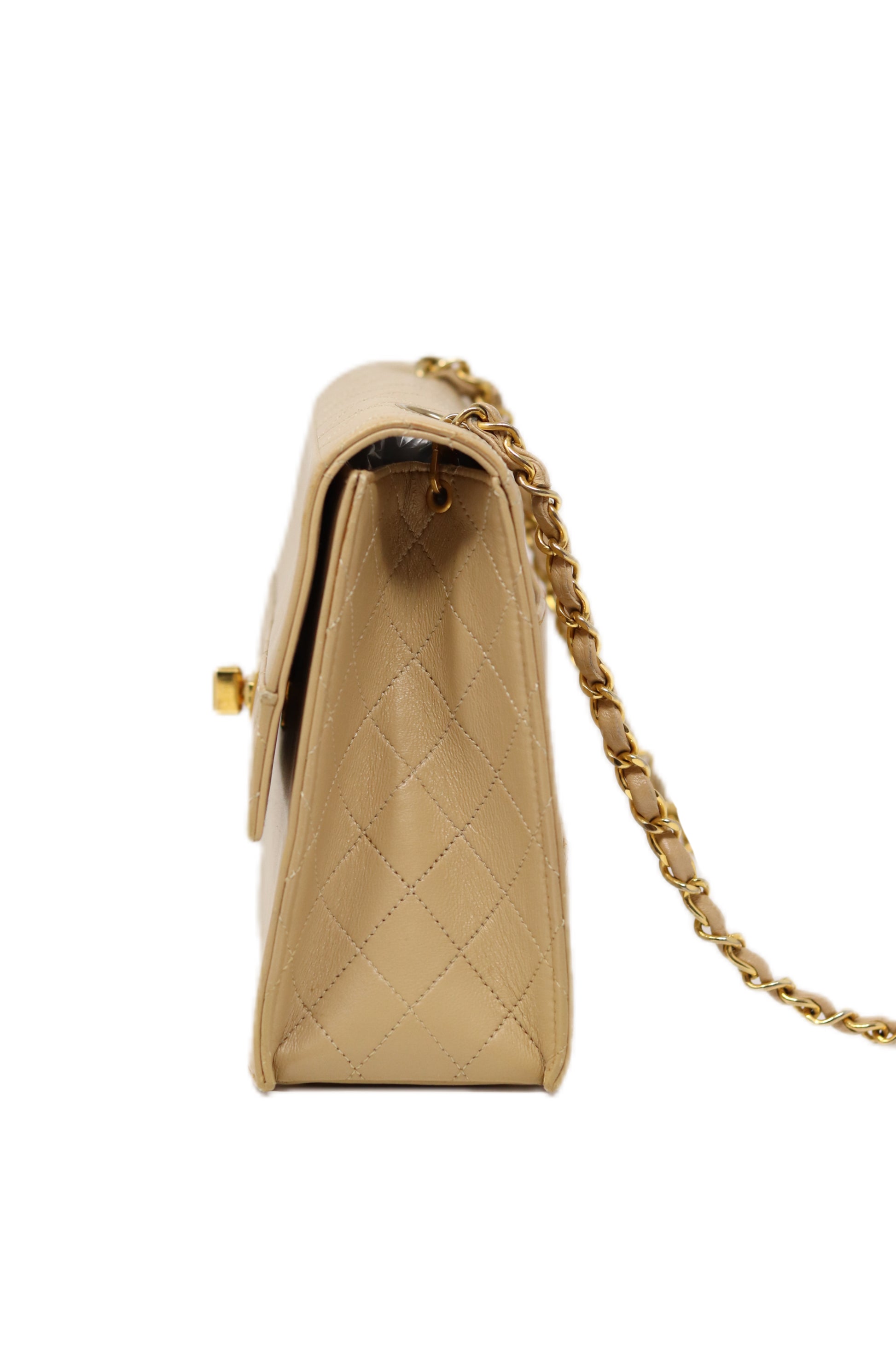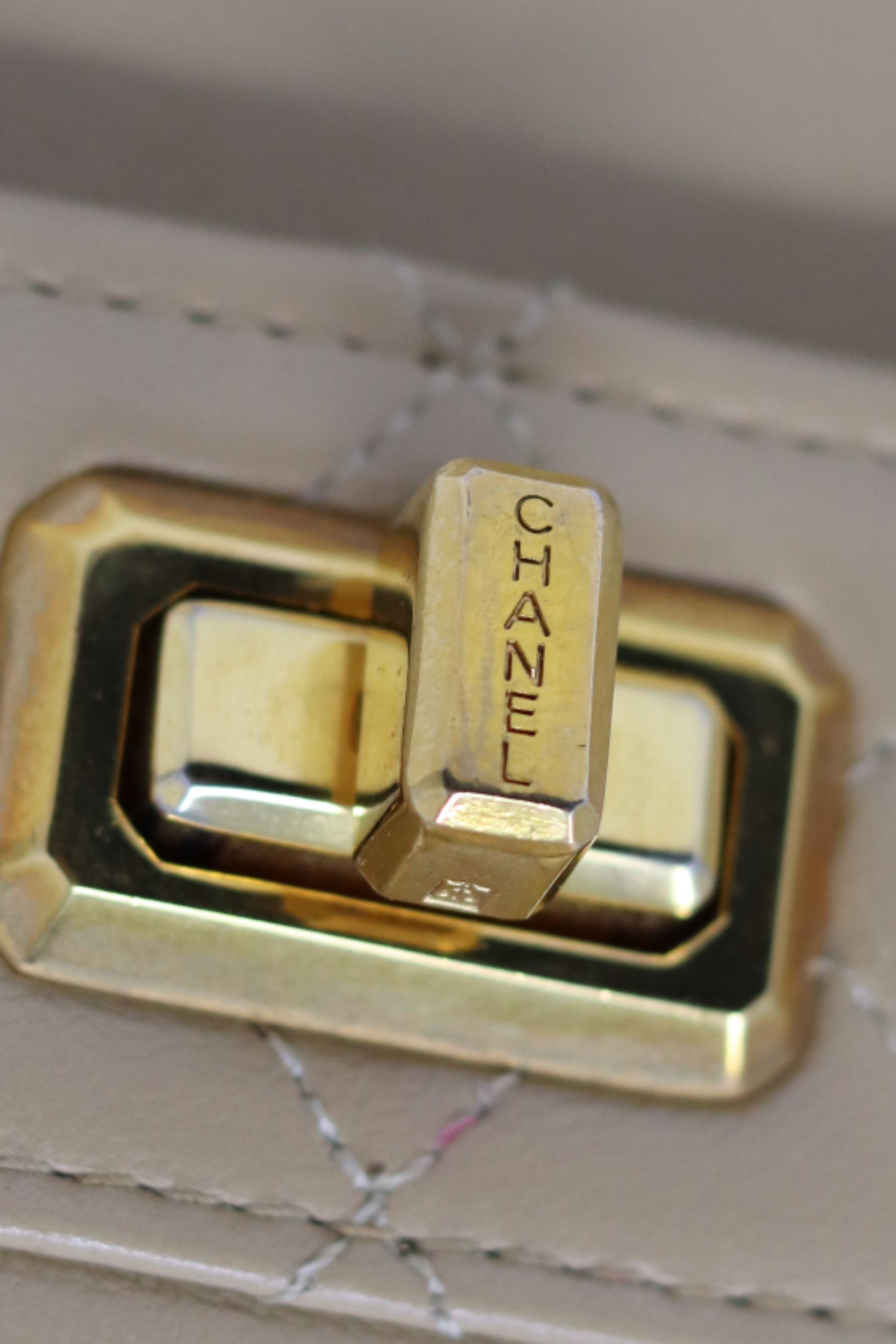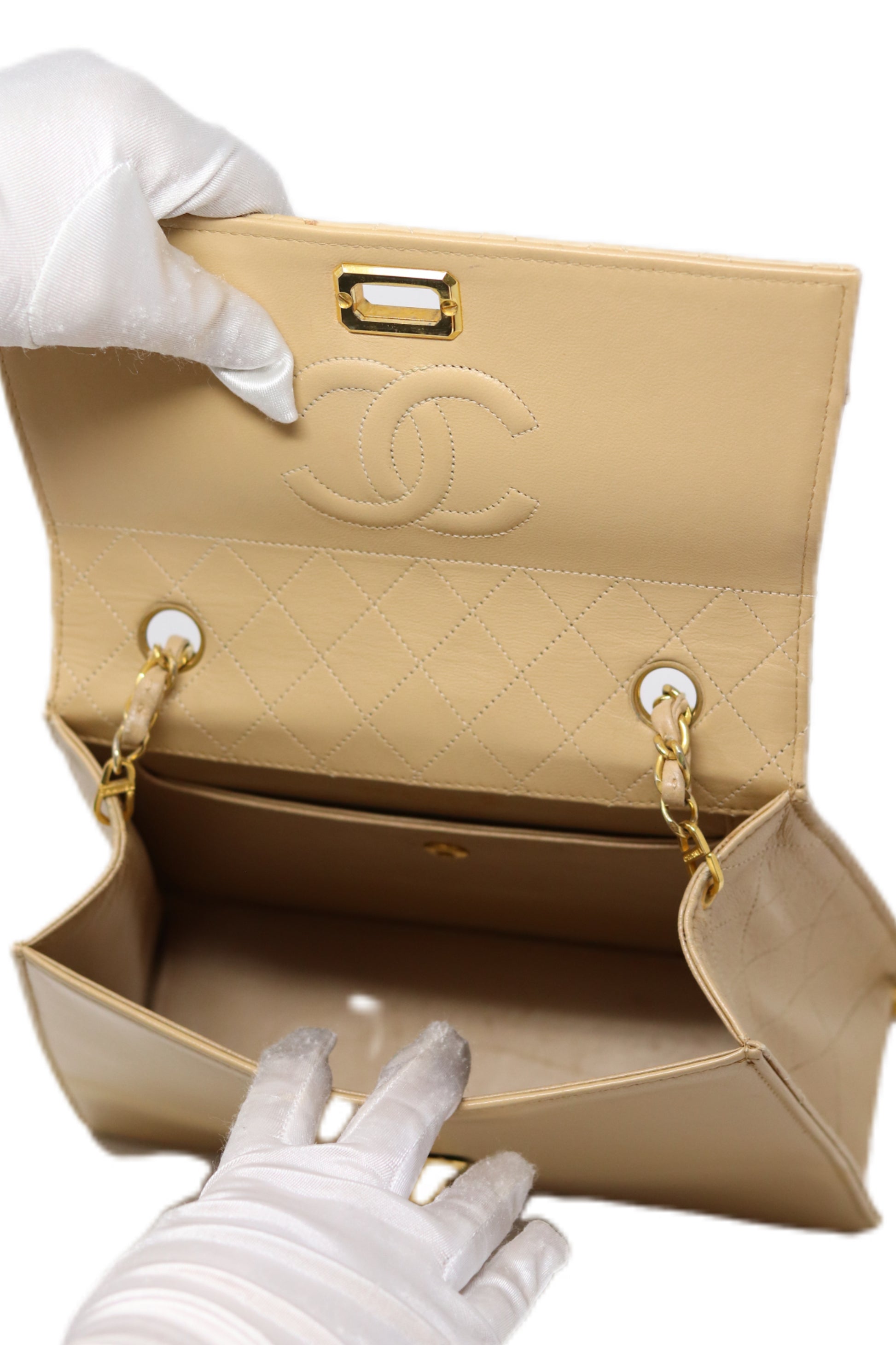 Pre-Owned CHANEL 1989-1991 Beige Lambskin Mademoiselle Lock Trapezoid Flap
