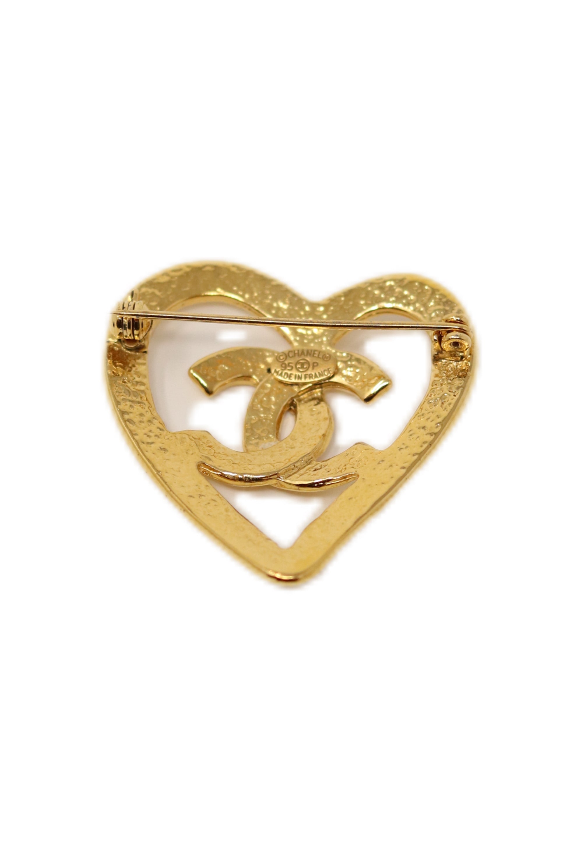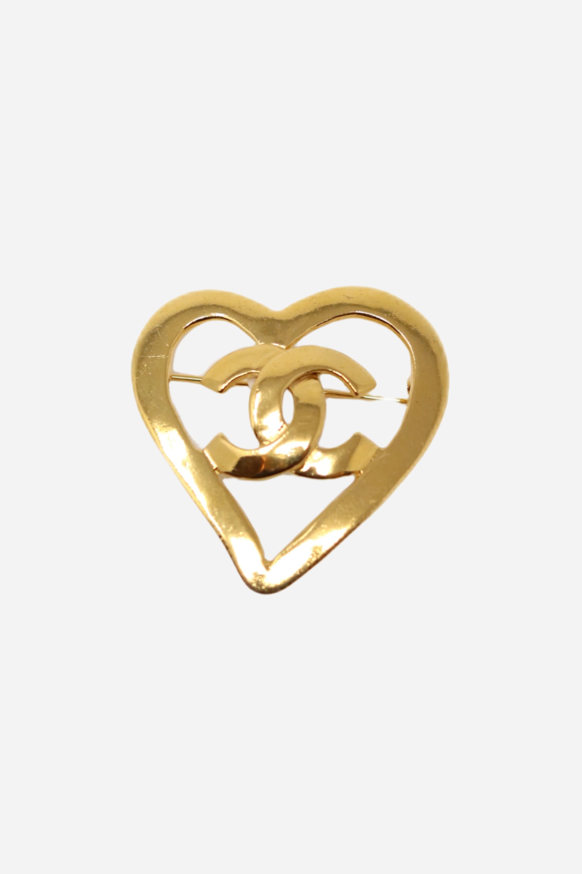 Pre-Owned CHANEL 1995 CC Logo Heart Brooch Gold-Plated