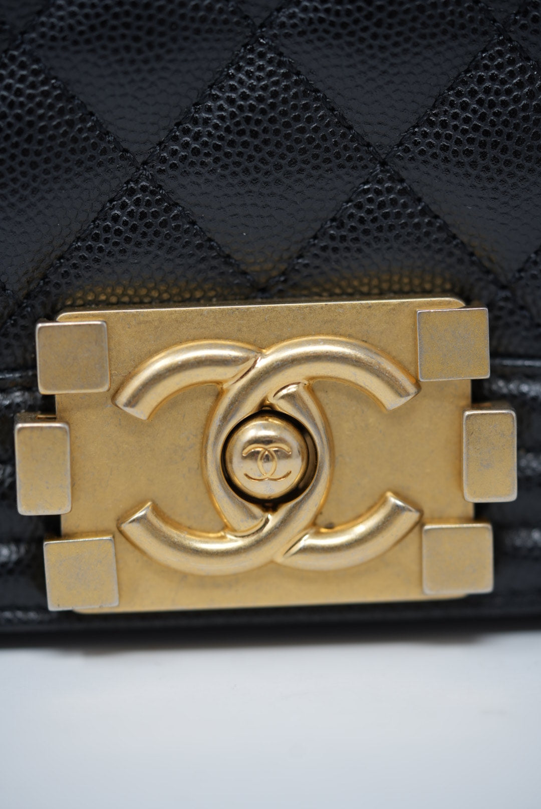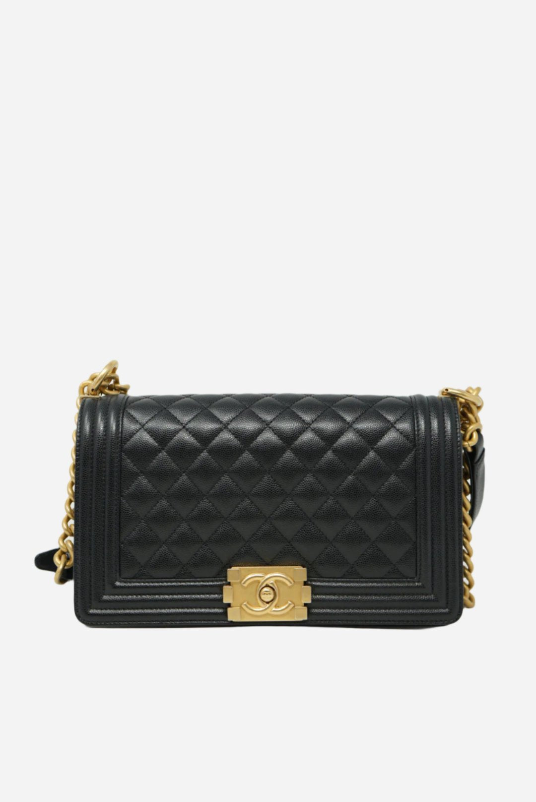 Pre-Owned CHANEL BOY HANDBAG MEDIUM CAVIAR Black