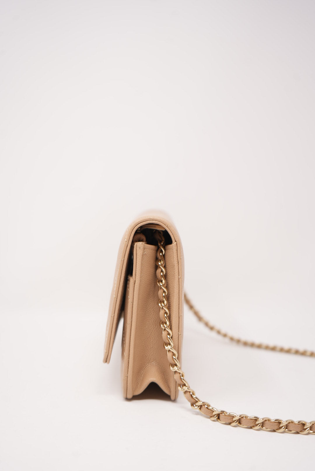 Pre-Owned Chanel Caviar Wallet On Chain Beige