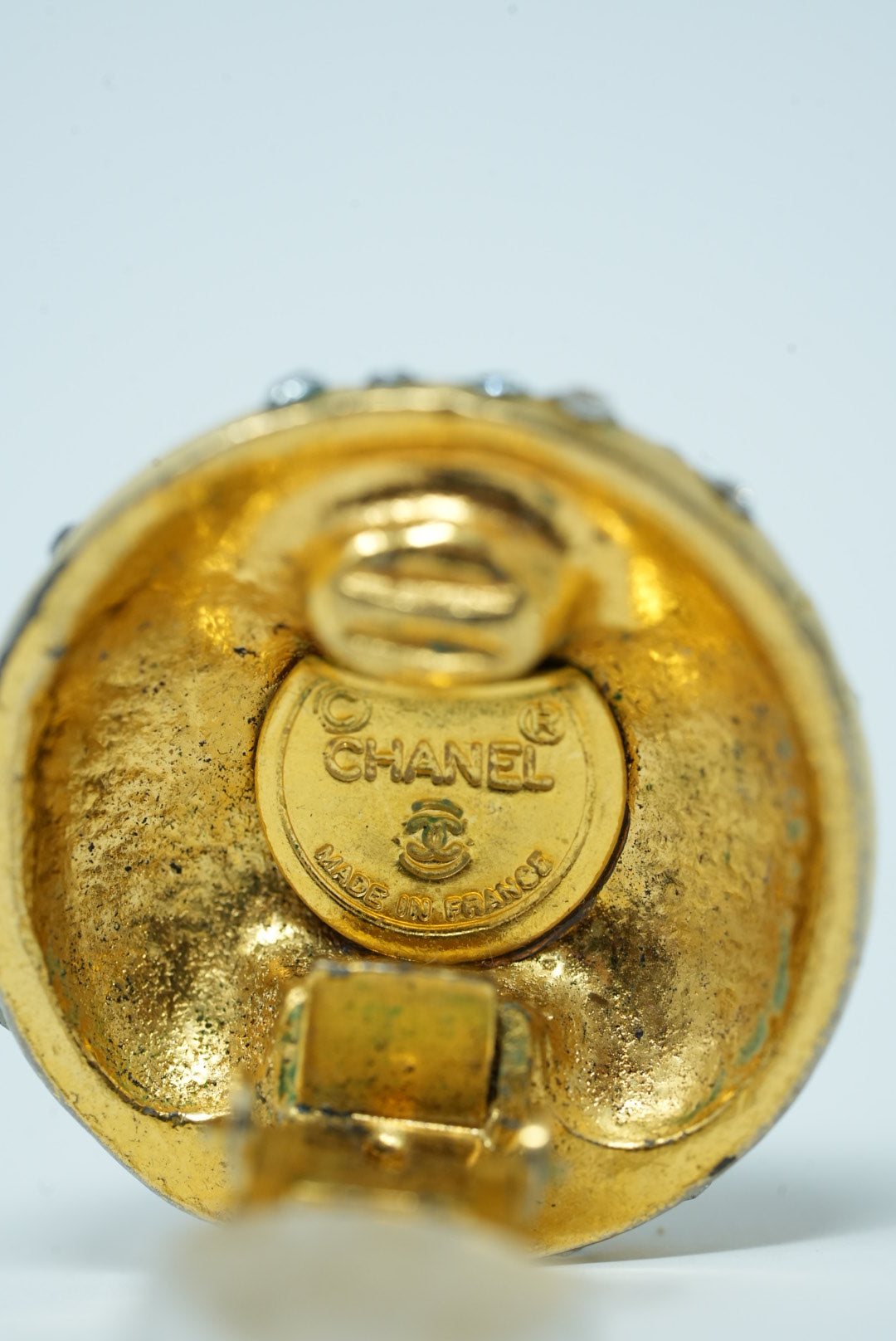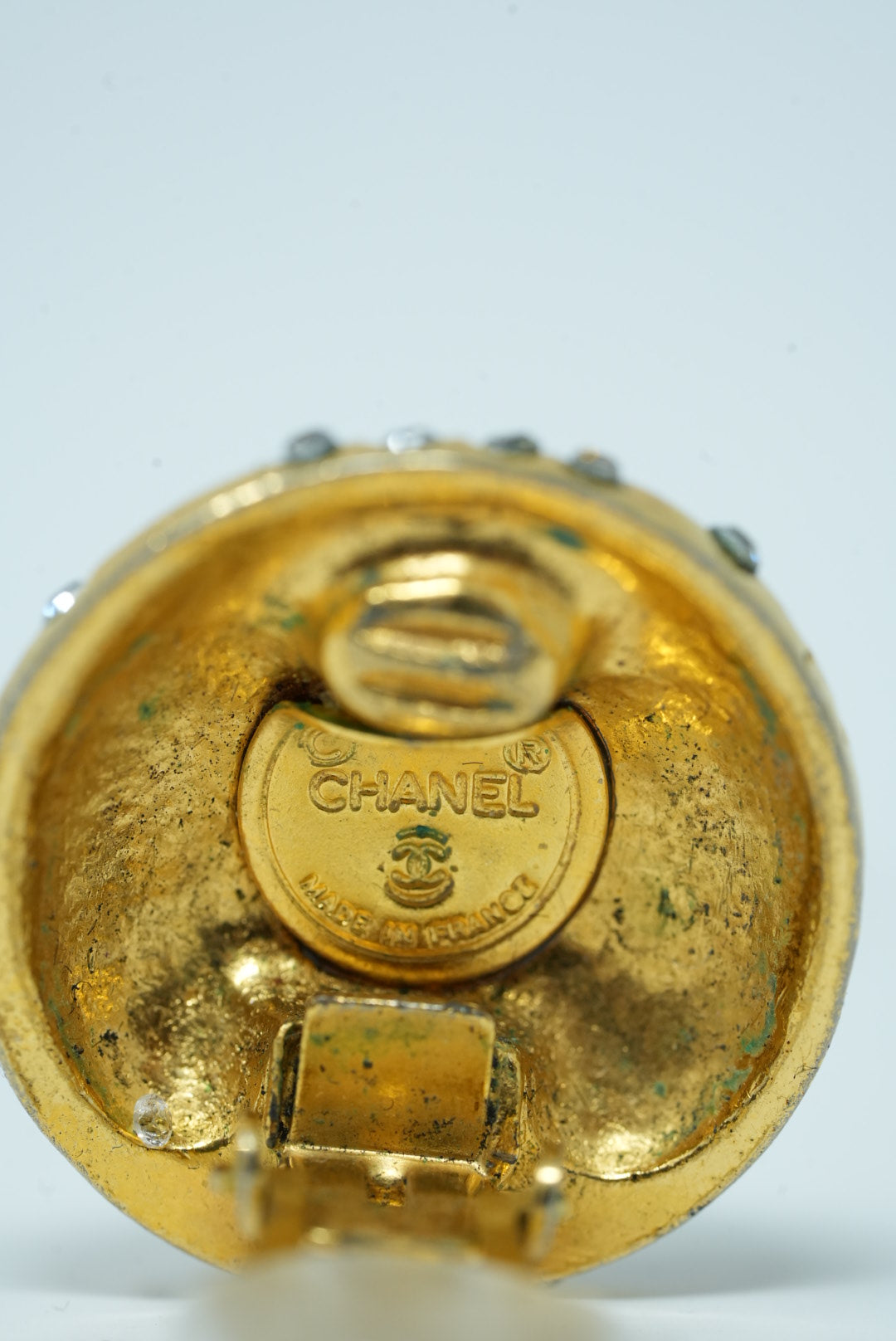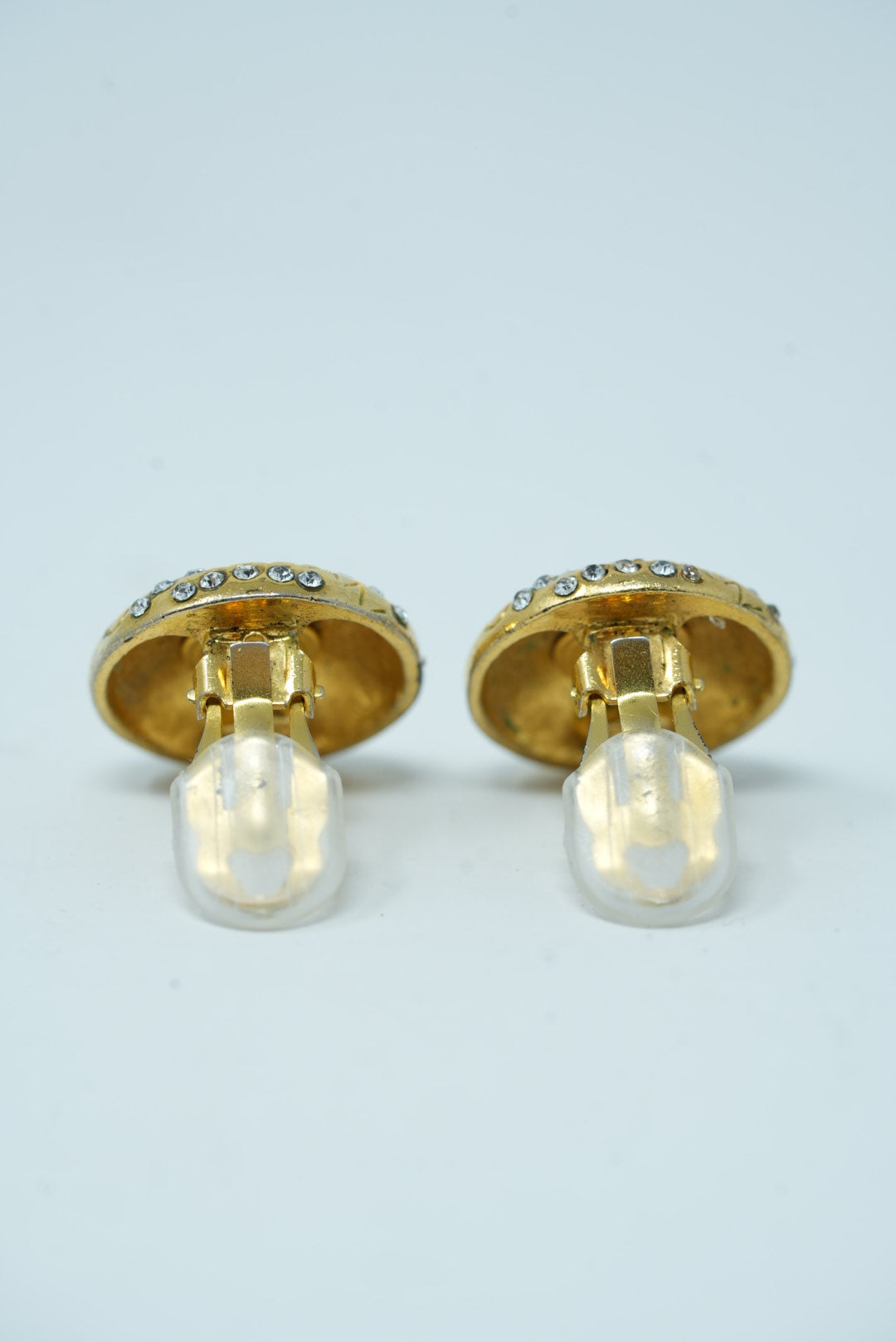 Pre-Owned Chanel Logo Rhinestone Round Earrings Clip-On 80s