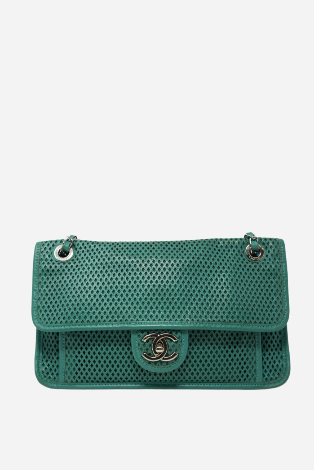 Pre-Owned Chanel Perforated Leather Classic Flap Bag Medium