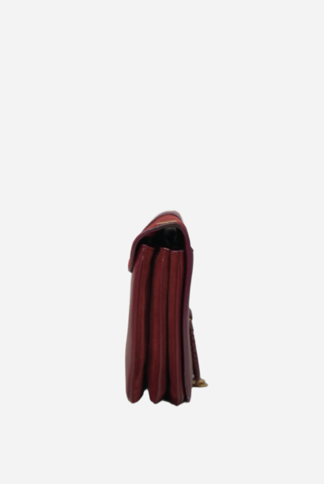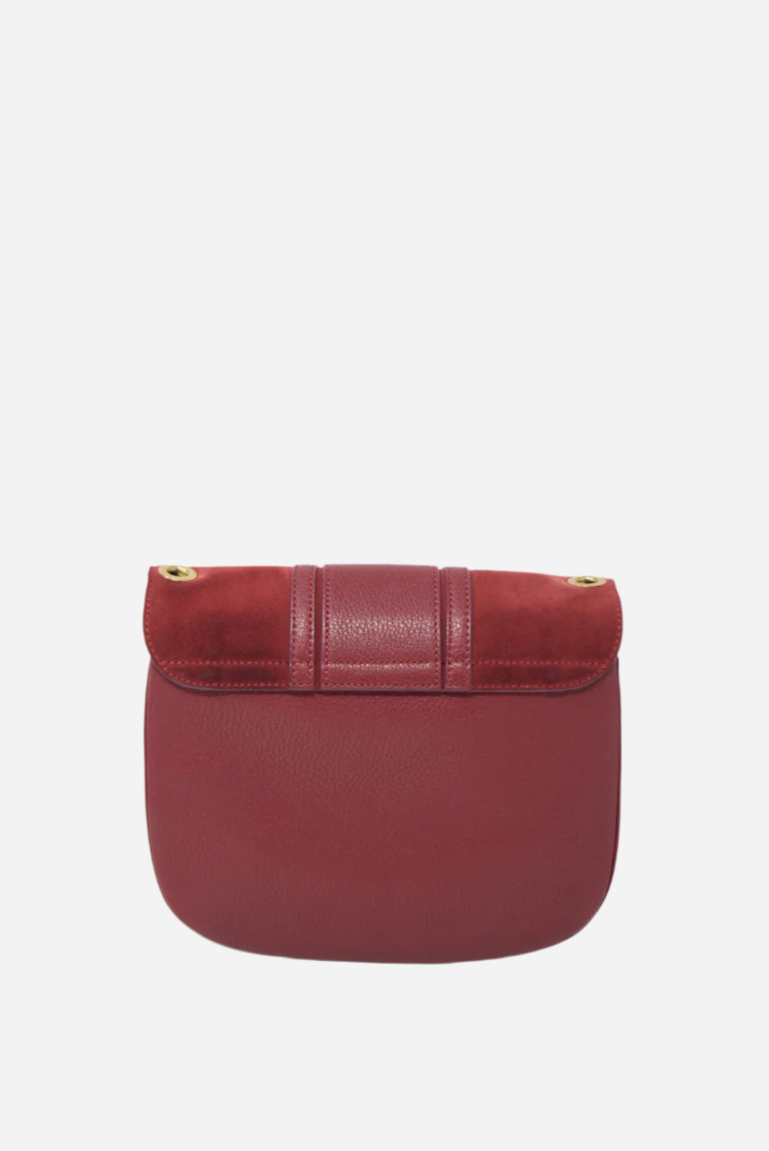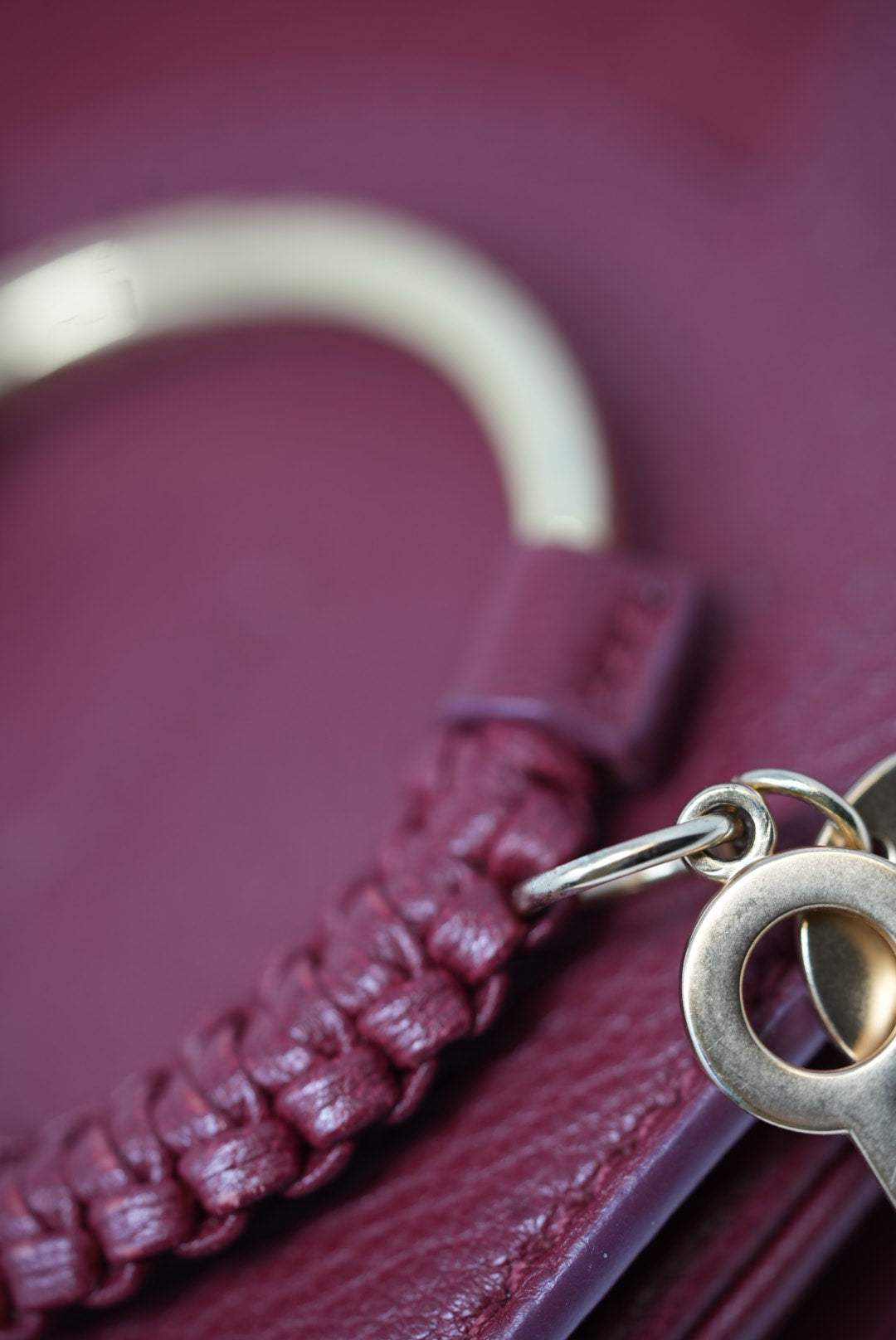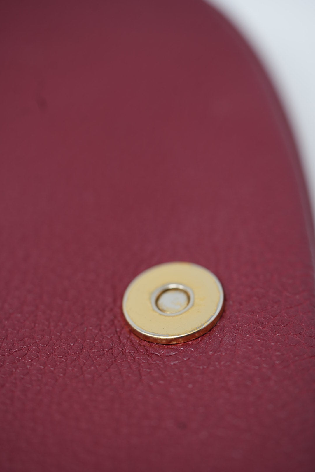 Outside | Good condition, the inside flap has minor stains, the hardware circle has red stains, and the hardware and back of the bag have scratches shown in picture |