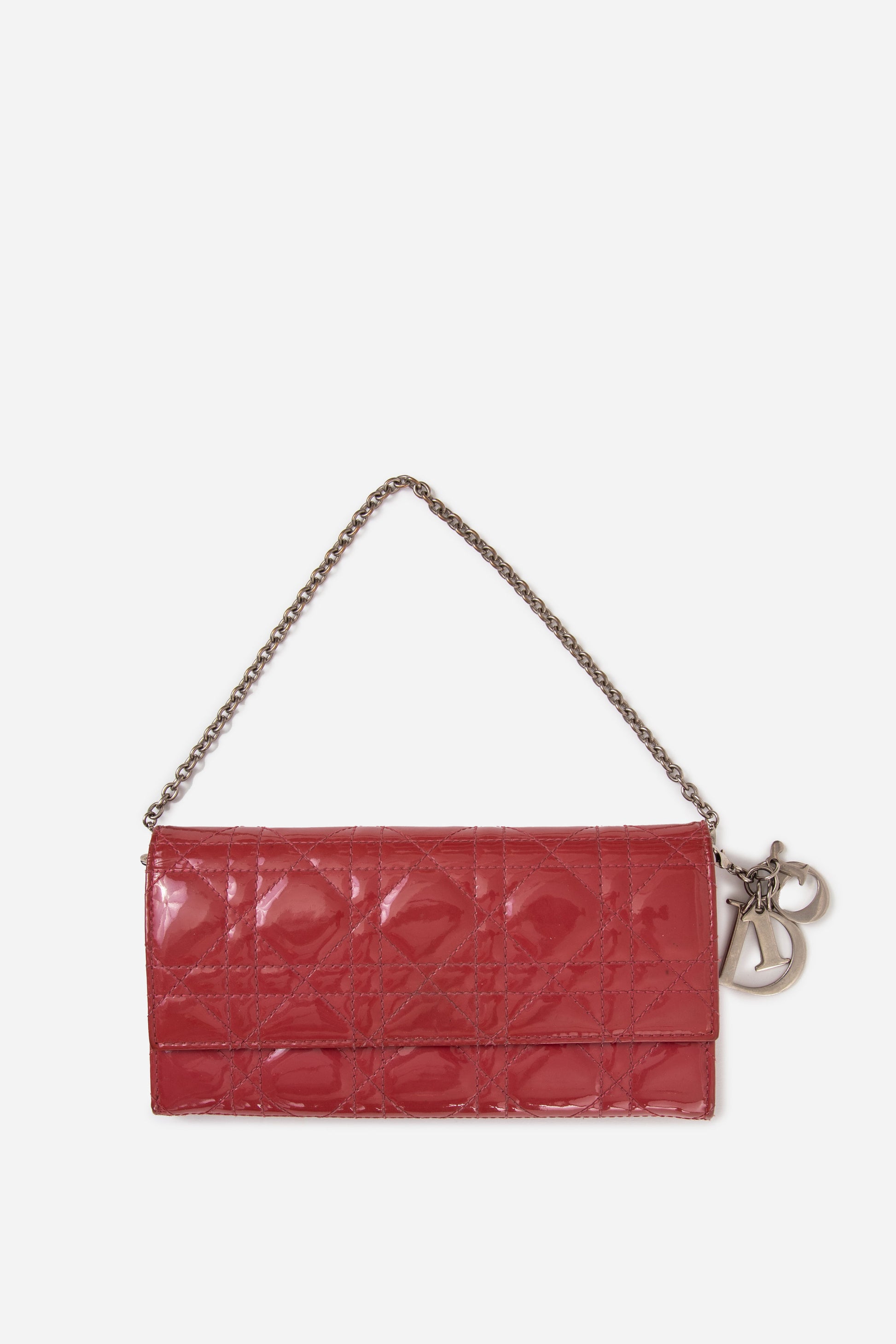 Dior 2012 Pink Patent Cannage Rendezvous Chain Wallet