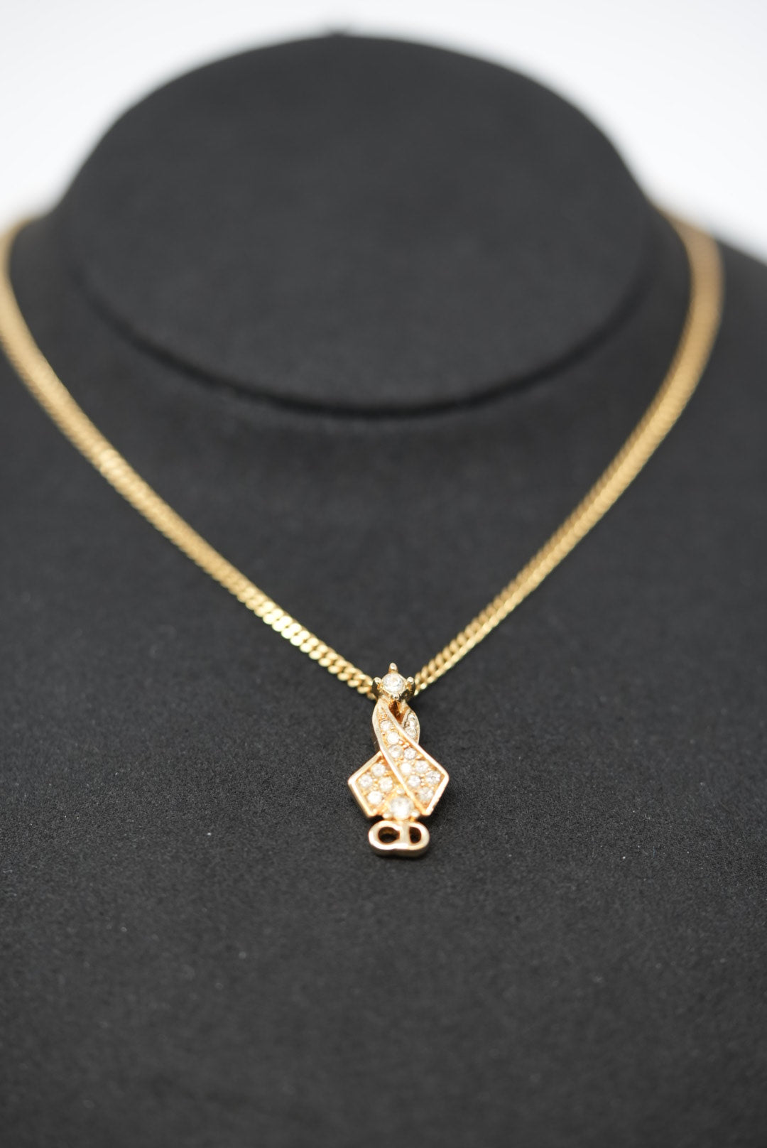 Dior Vintage Gold-Tone Rhinestone Ribbon Necklace