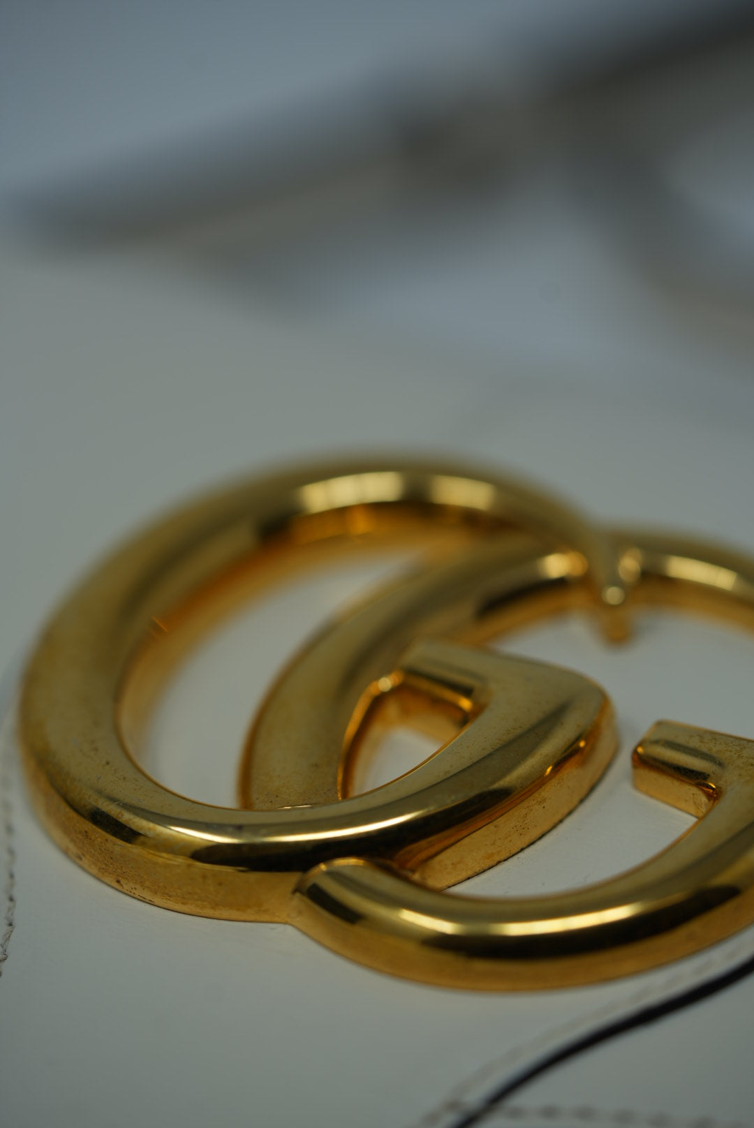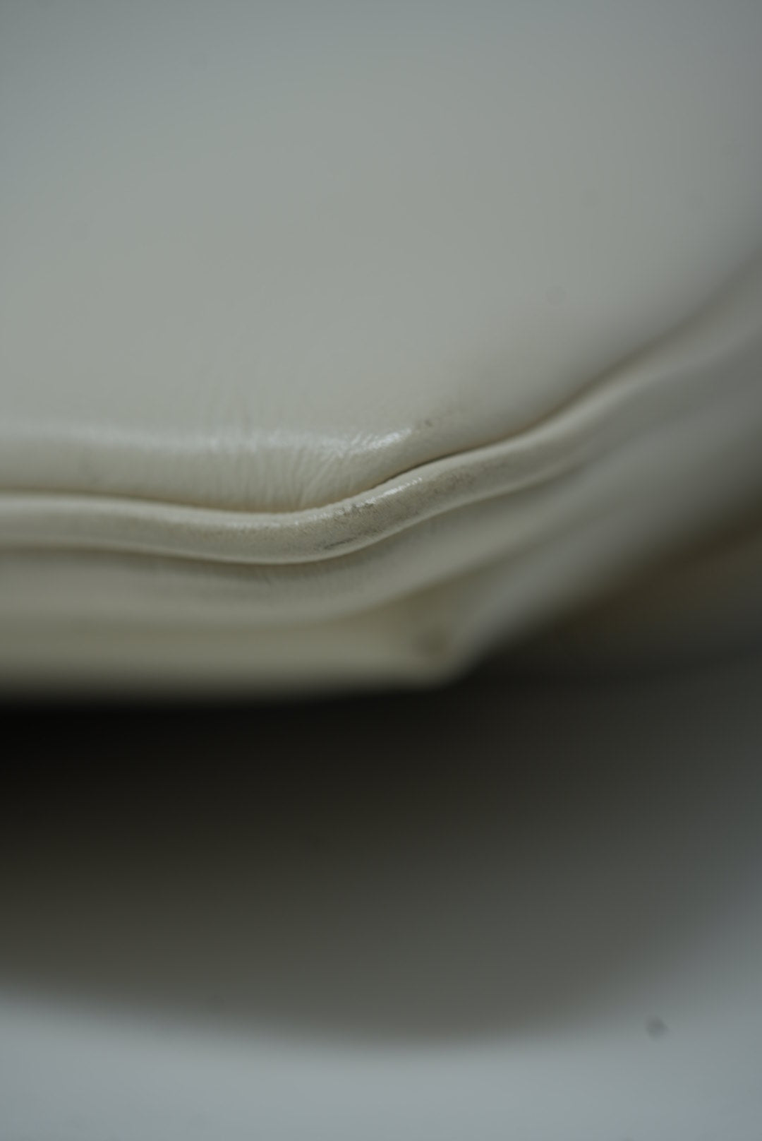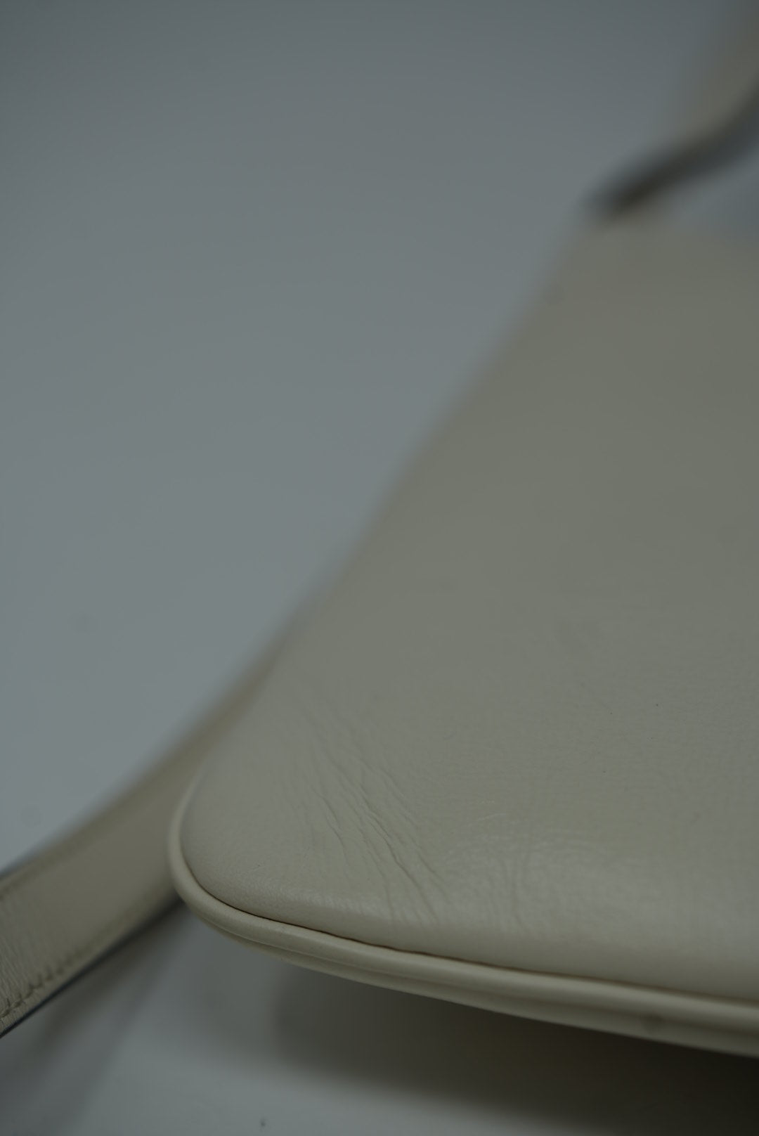 Outside | Good condition, some scratches on bottom corner, the hardware has some oxidation, some creases on the right back of the bag, and the strap connector have black stains as shown in the picture. |