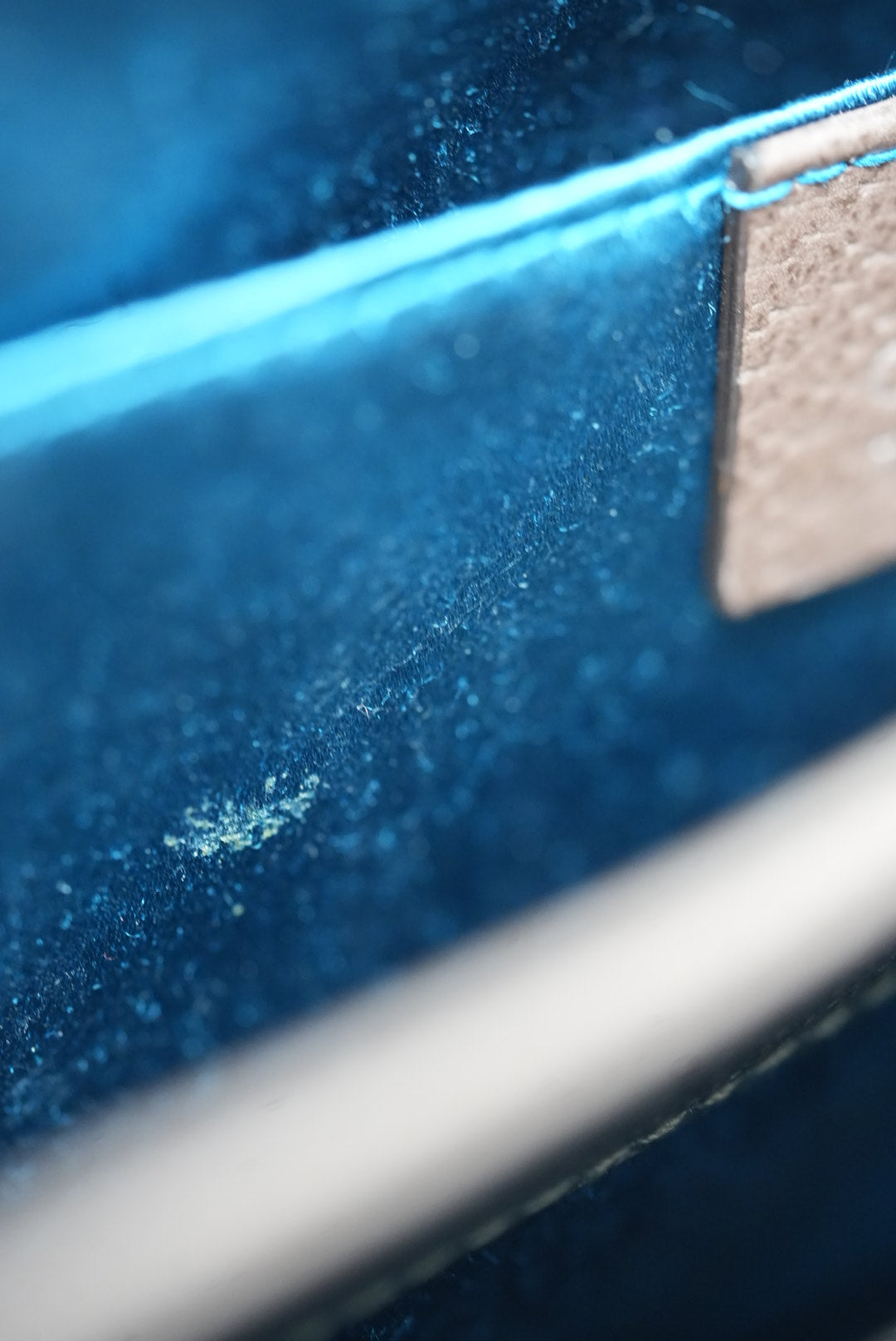 Good condition, with slight deformation on the back of the bag, the edge of the bag has scratches, and the inside has minor stains as shown in the pictures. |