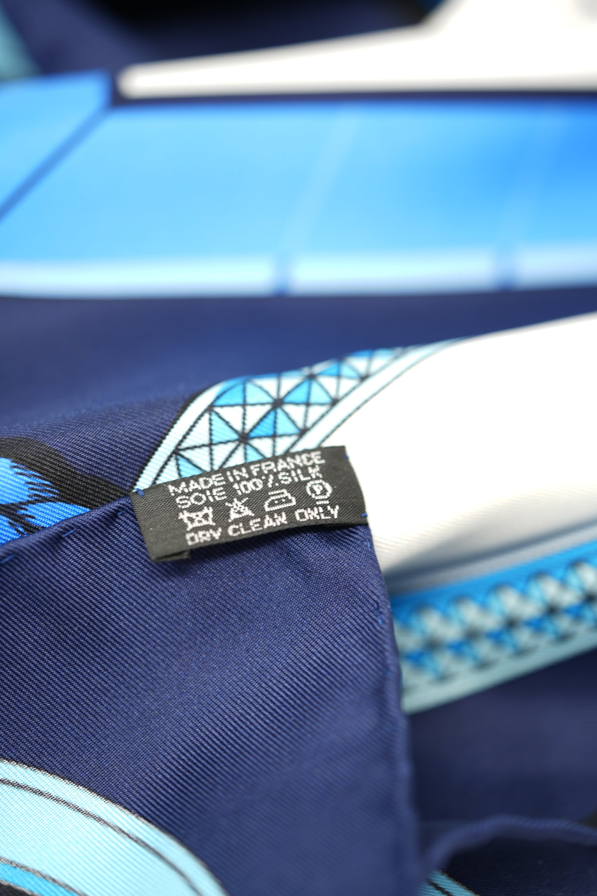 Hermes 90cm Silk Scarf Blue Horses NW W/box