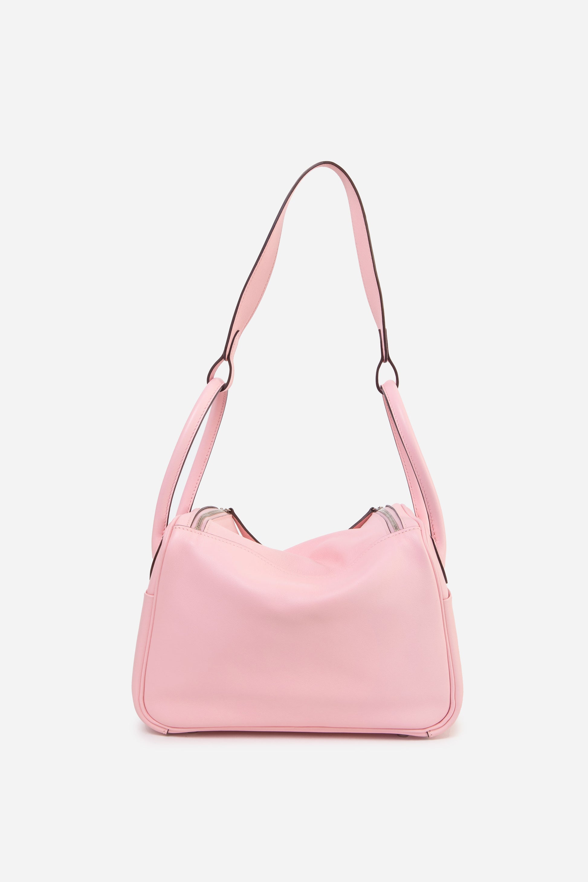 Discover the coveted Hermès Lindy 26 in soft Swift leather, crafted in the 2016 and finished in a feminine Pink hue. This iconic Hermès shoulder bag features dual side zippers, a relaxed slouchy silhouette, and signature palladium hardware.