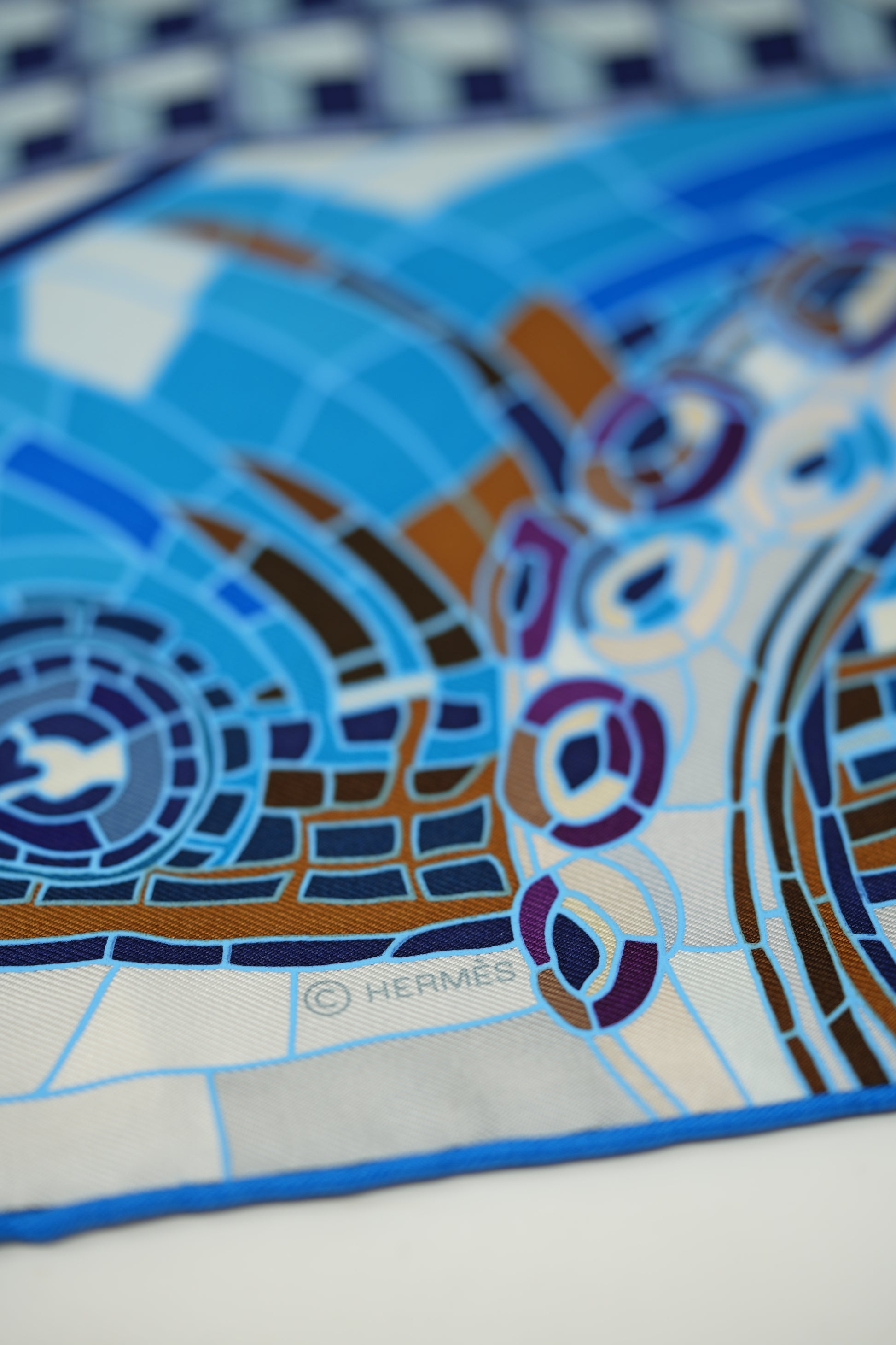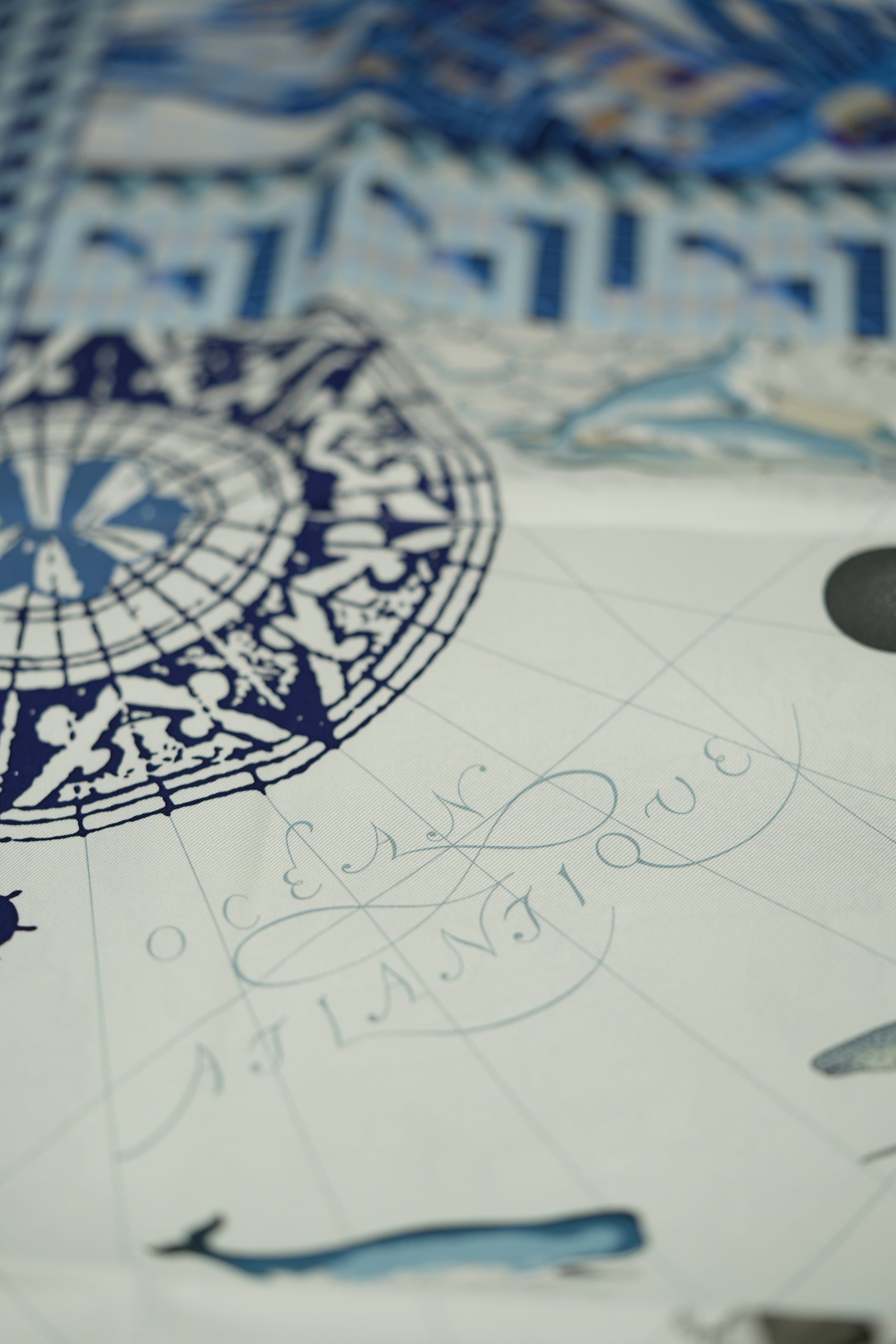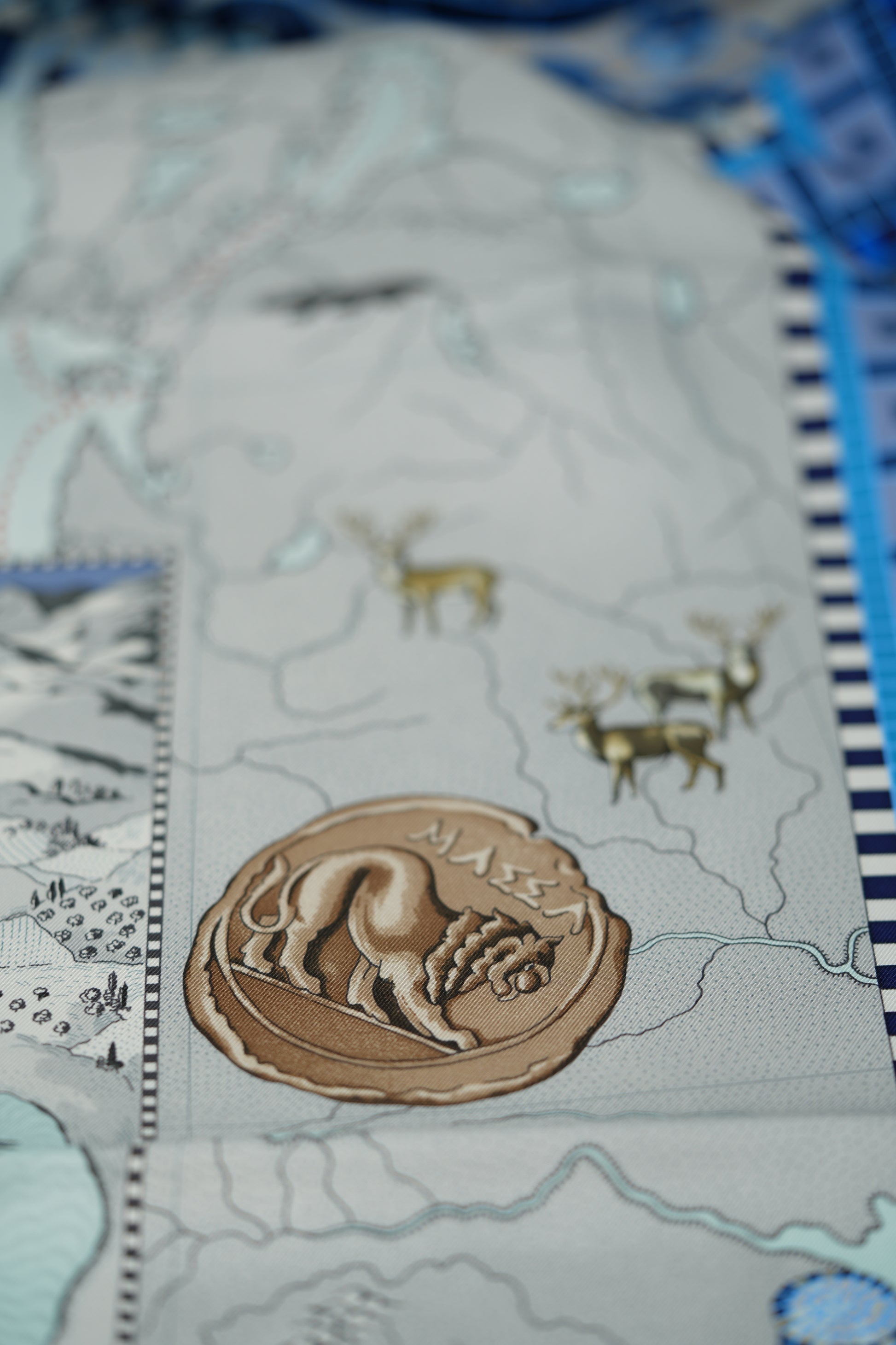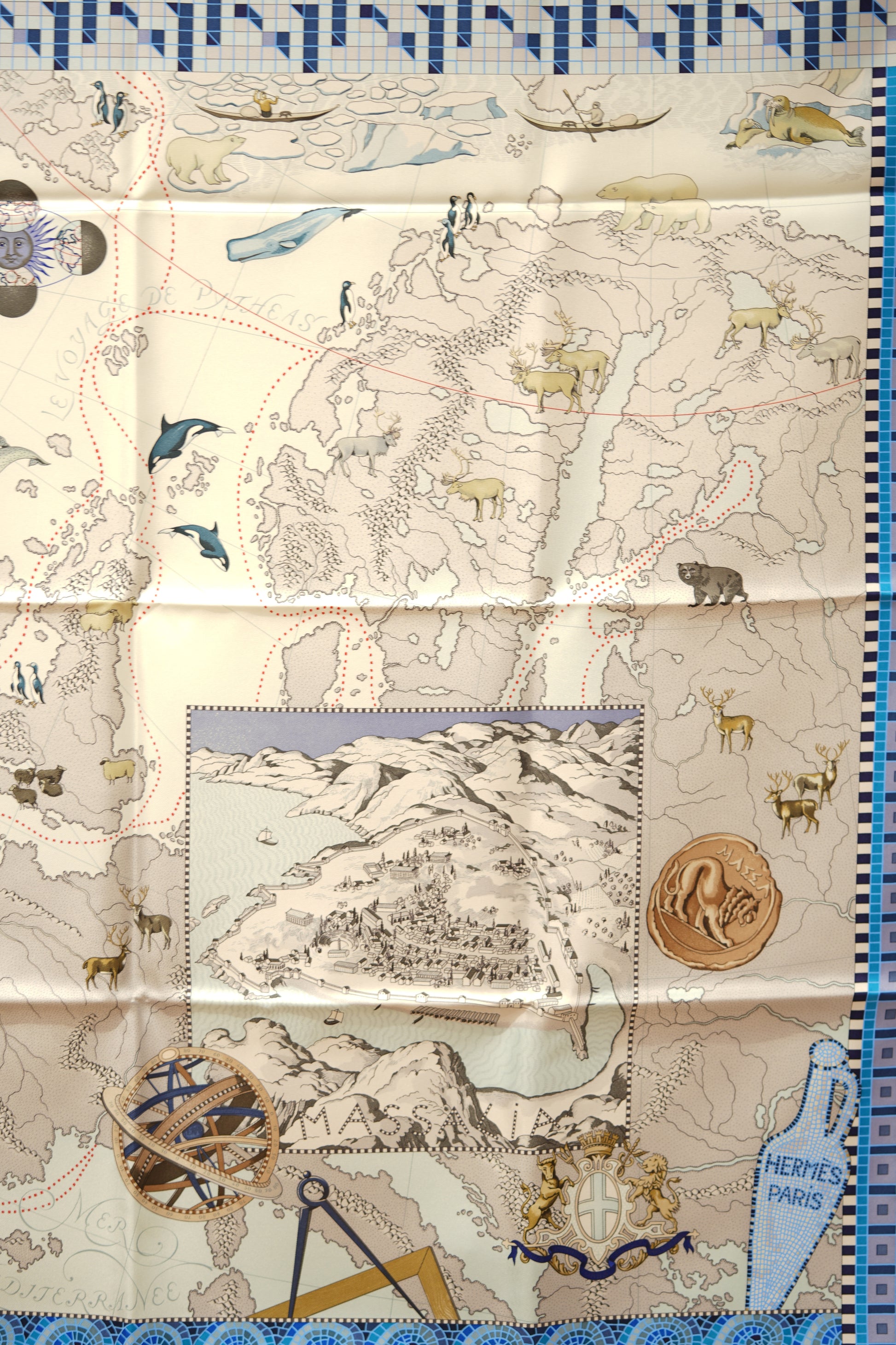 Hermes Voyage De Pytheas Scarf 90cm 100% silk Blue BrandNew