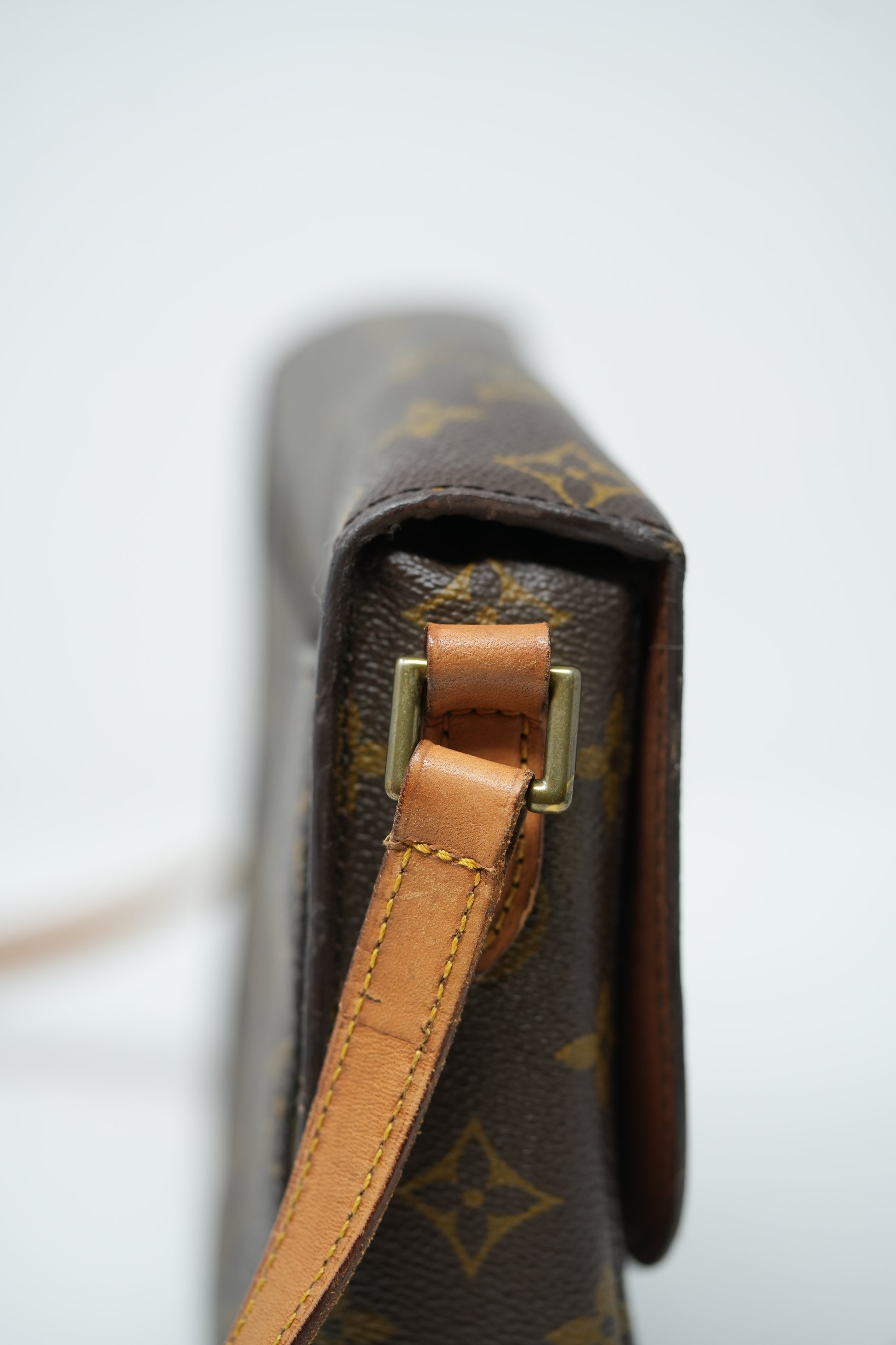 | Outside | Fair condition. There are some signs of wear on the hardware and the strap, as shown in the pictures. |