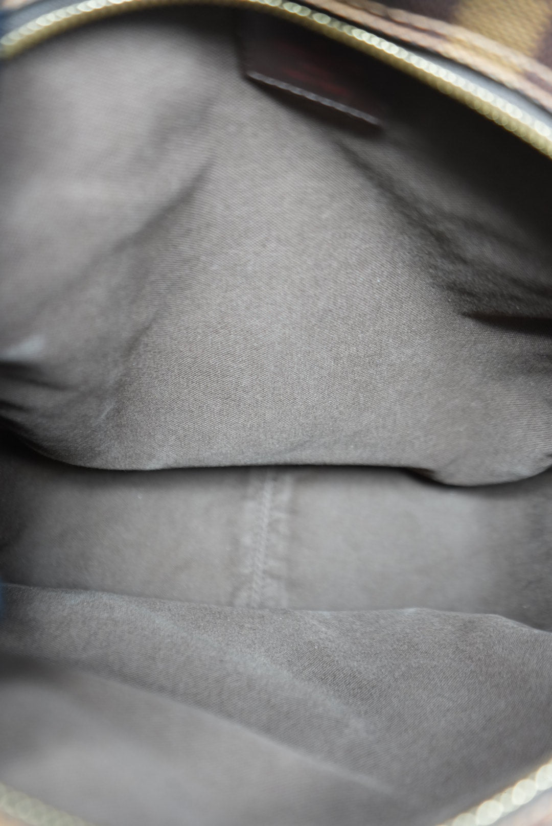 Good condition, the strap has scratches, and outside pocket has black stains inside as shown in the pictures. |