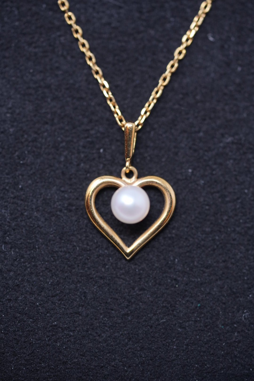 Mikimoto Vintage Heart 1 Pearl Necklace K18