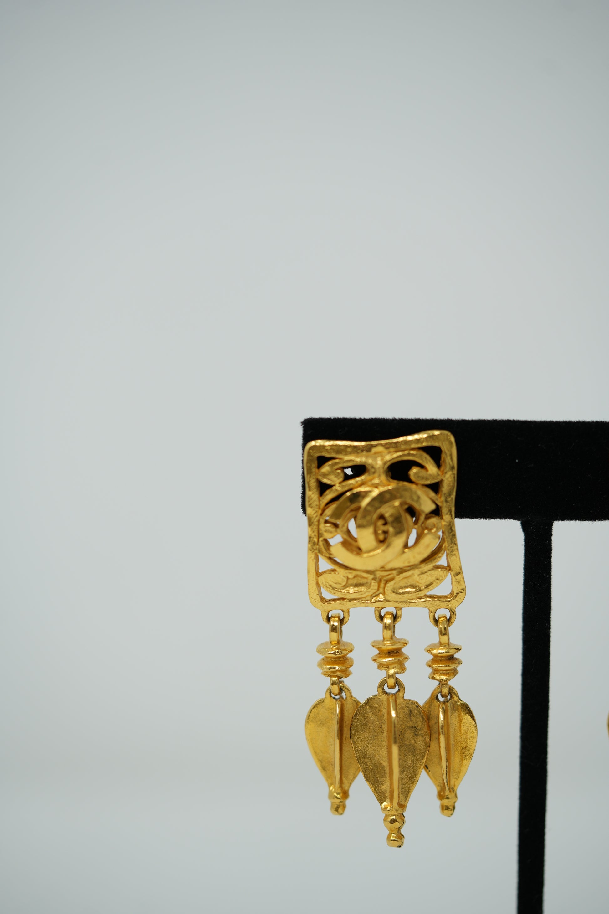 Pre-owned Chanel 1995 Dangle Hoop CC Earrings