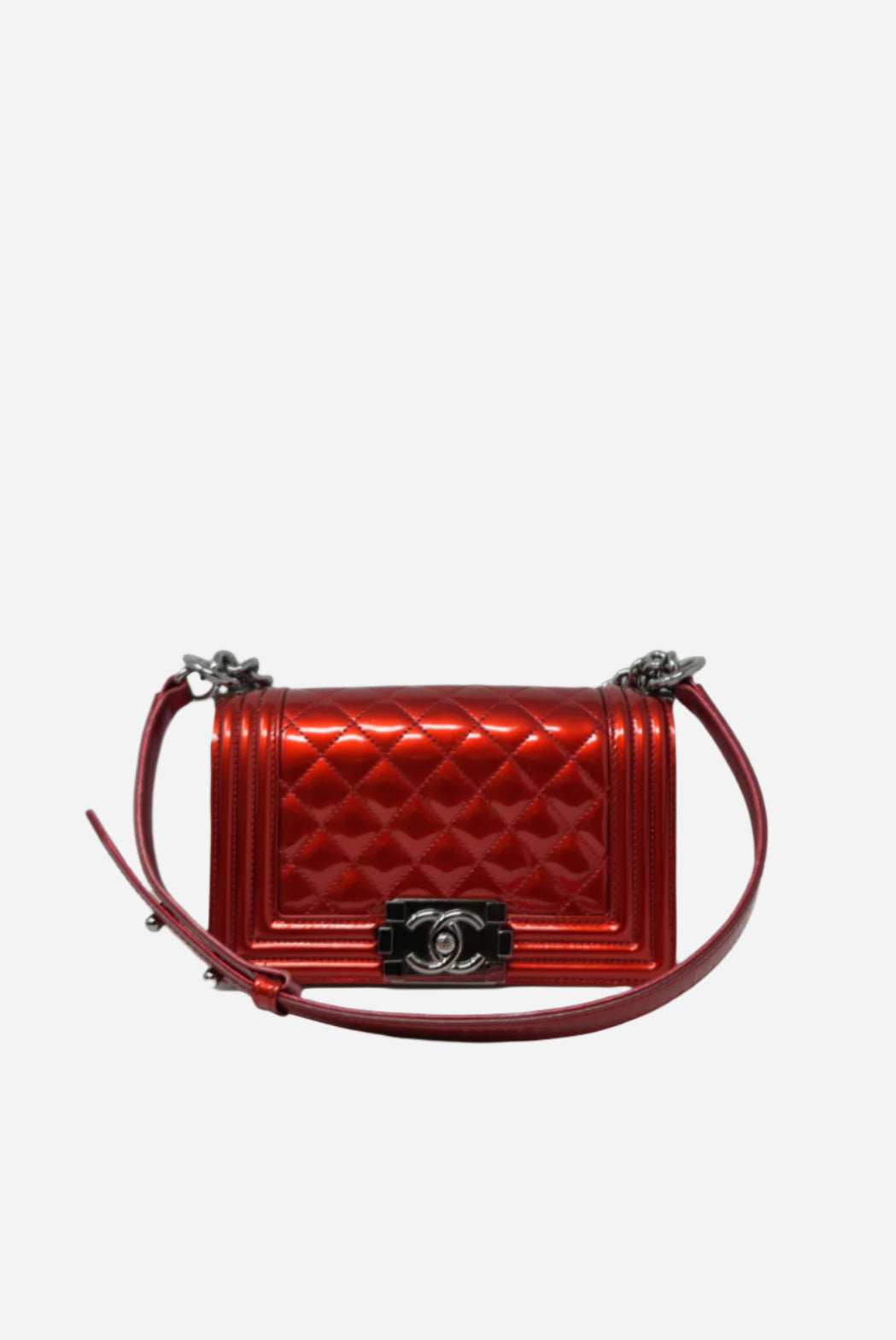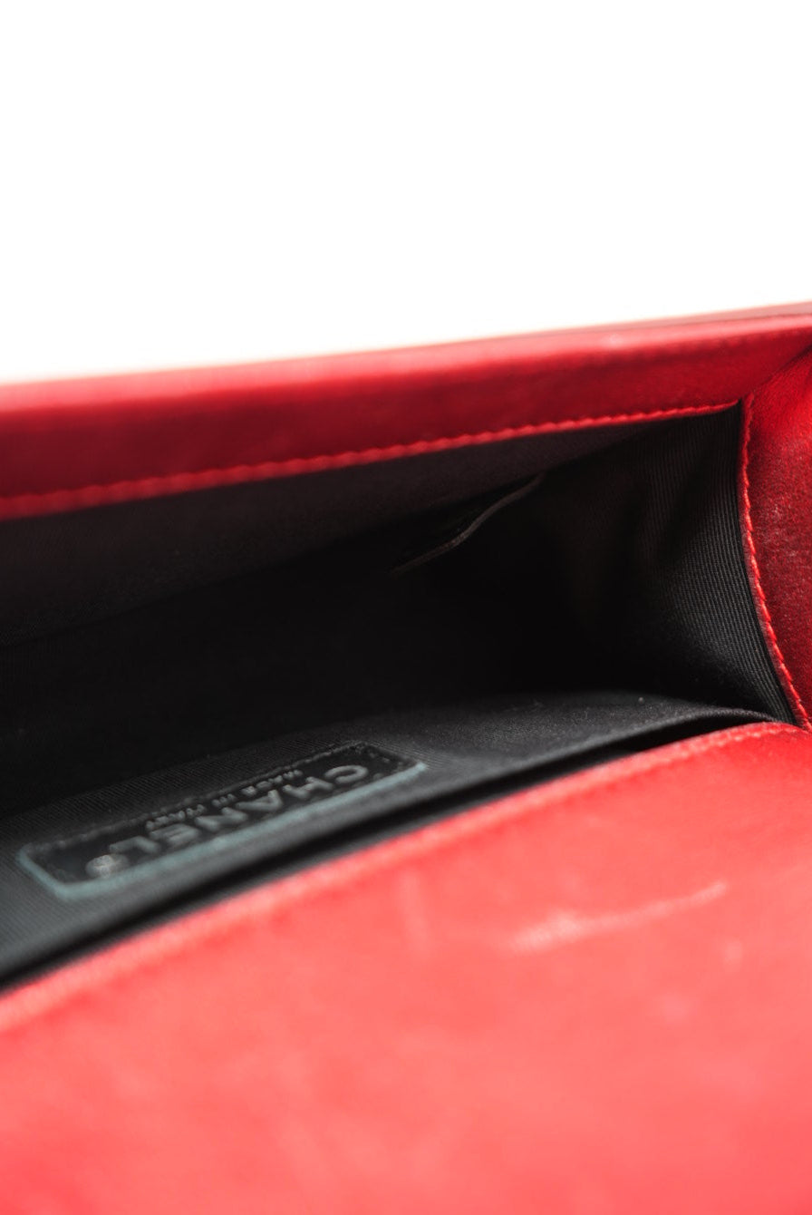 Pre-Owned Chanel 2014 Red Patent Boy Flap Bag