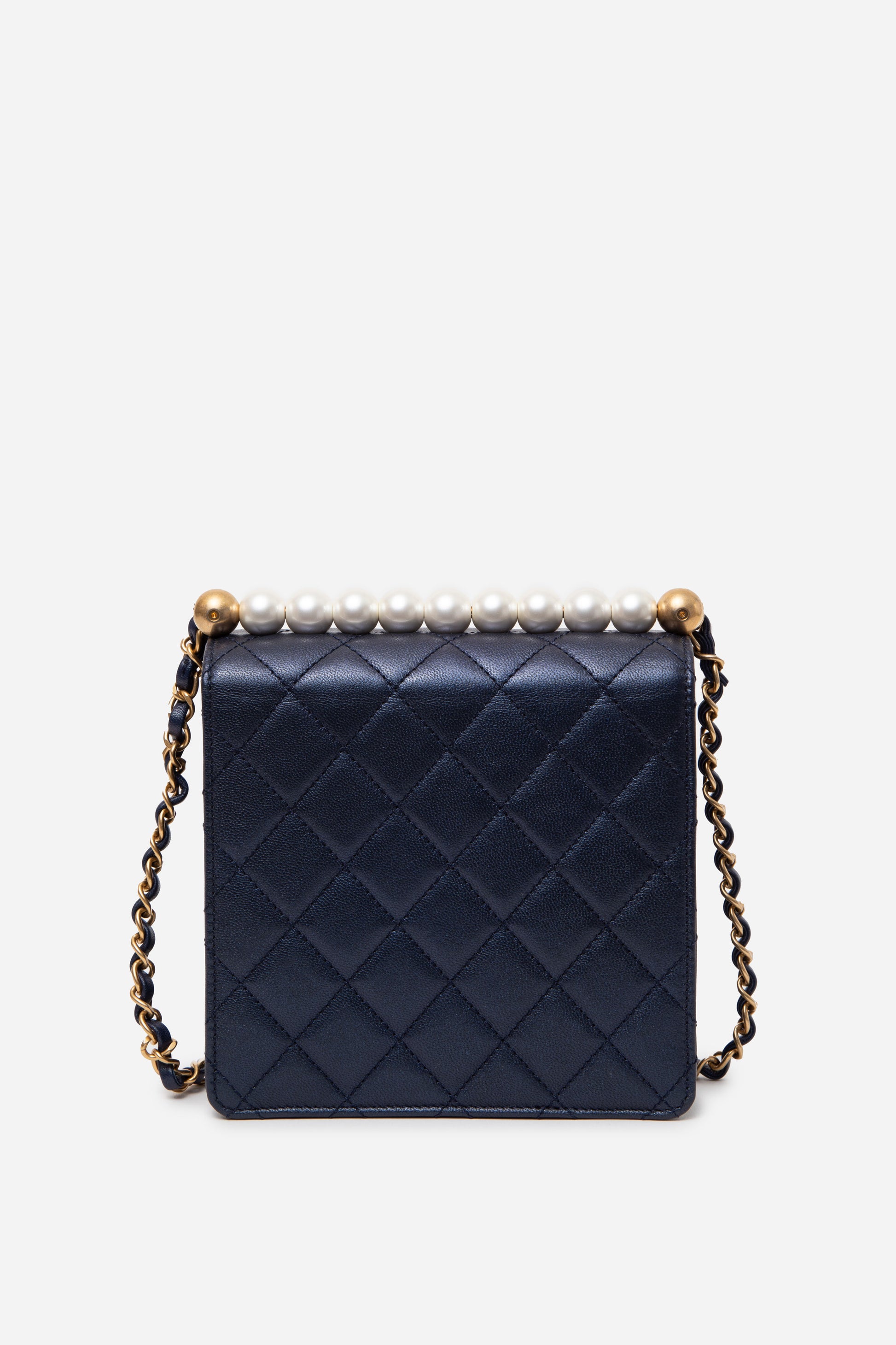 Pre-Owned Chanel 2019 Navy Lambskin Samll Pearl Flap Crossbody Bag