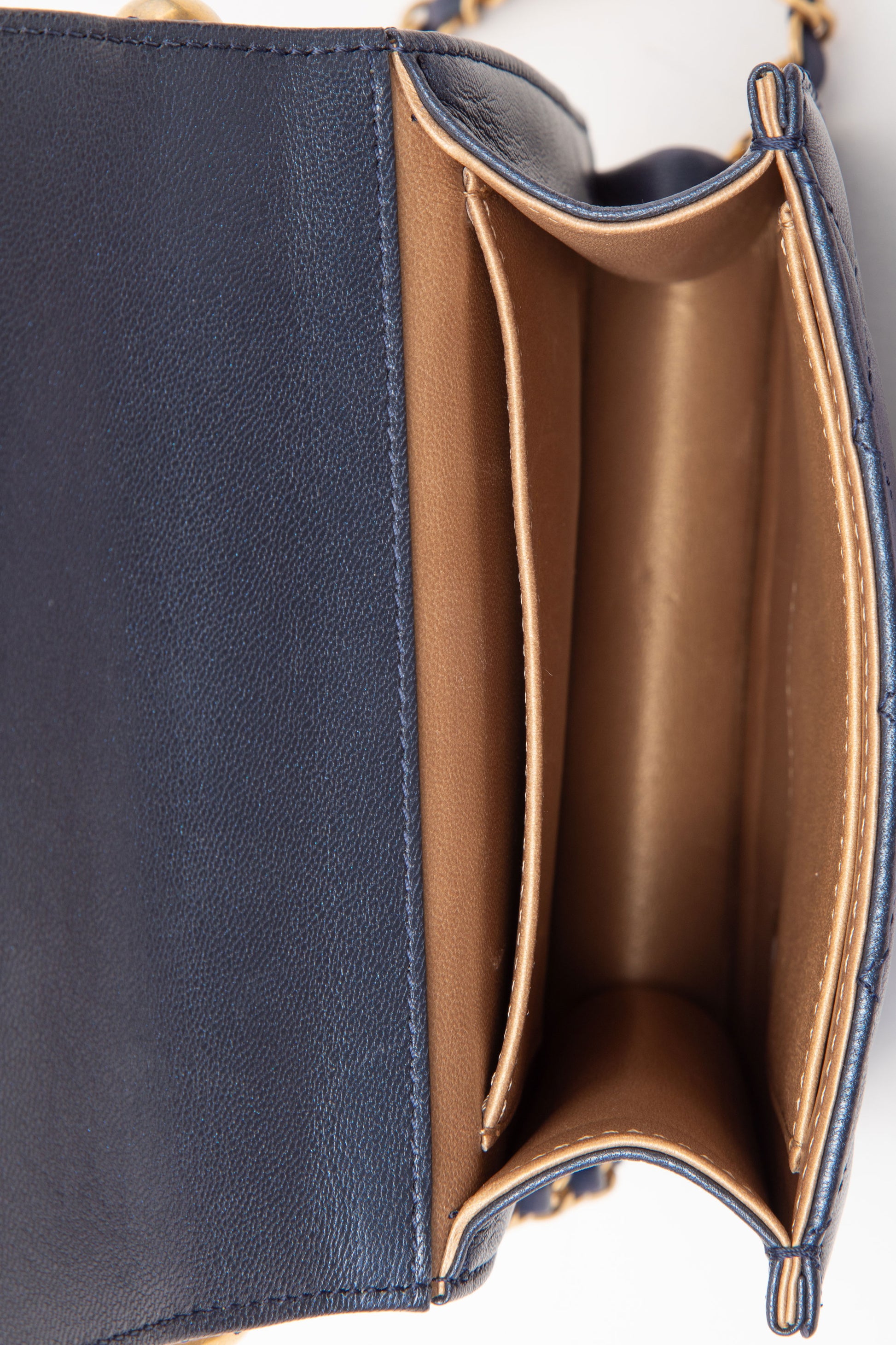 Pre-Owned Chanel 2019 Small Navy Lambskin Pearls Flap Crossbody Bag, a rare and refined piece that blends classic Chanel craftsmanship with a delicate pearl-embellished design. Crafted from luxurious navy lambskin, this compact silhouette features a structured flap, signature quilted detailing, and an elegant crossbody chain strap for effortless day-to-night wear.