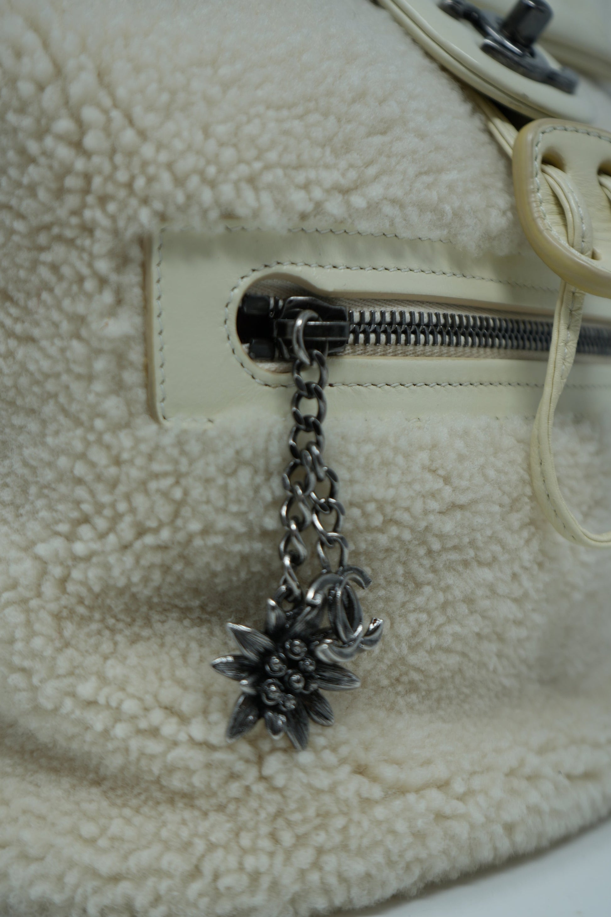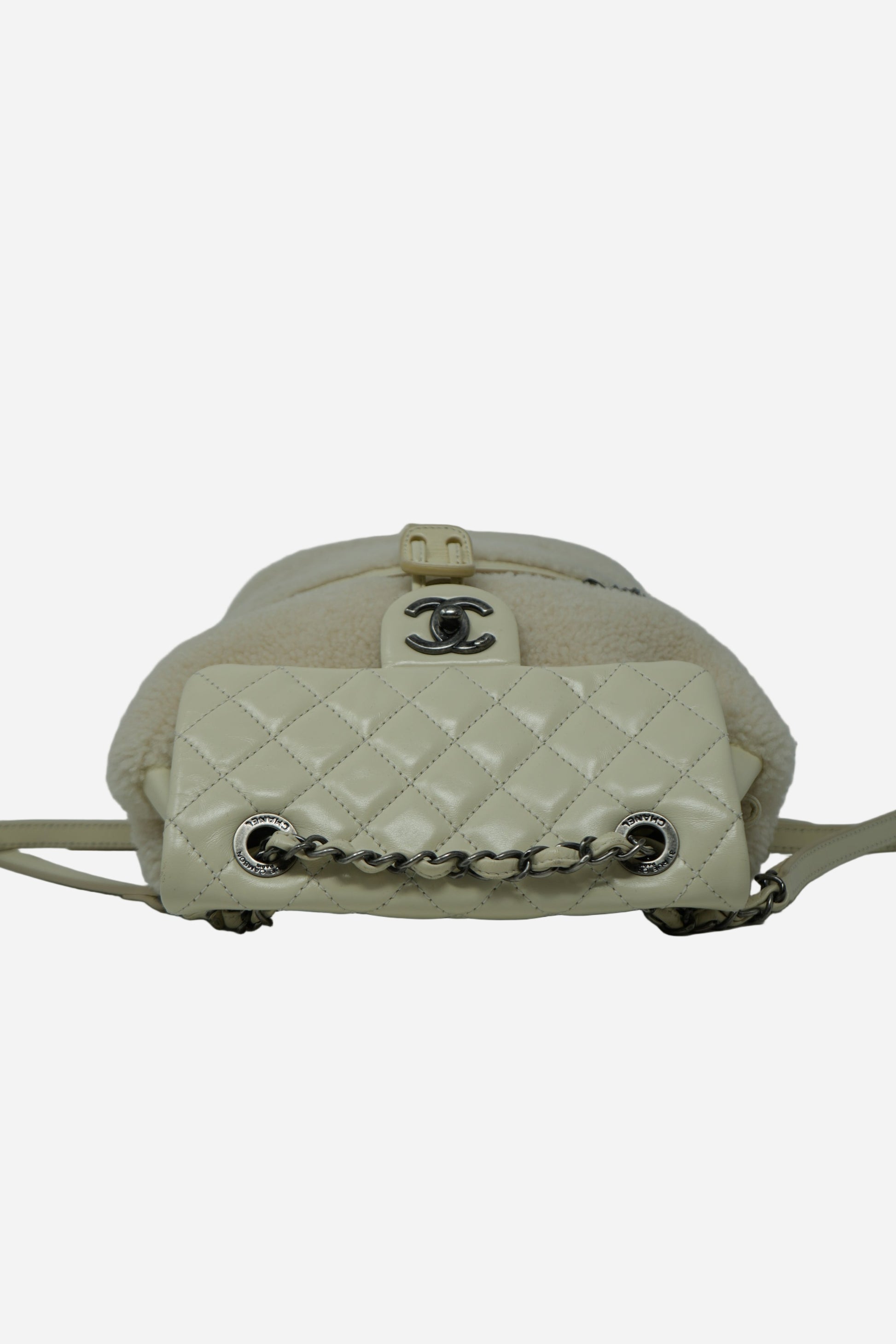 Pre-Owned Chanel 2015–2016 White Shearling/Calf Salzburg Backpack