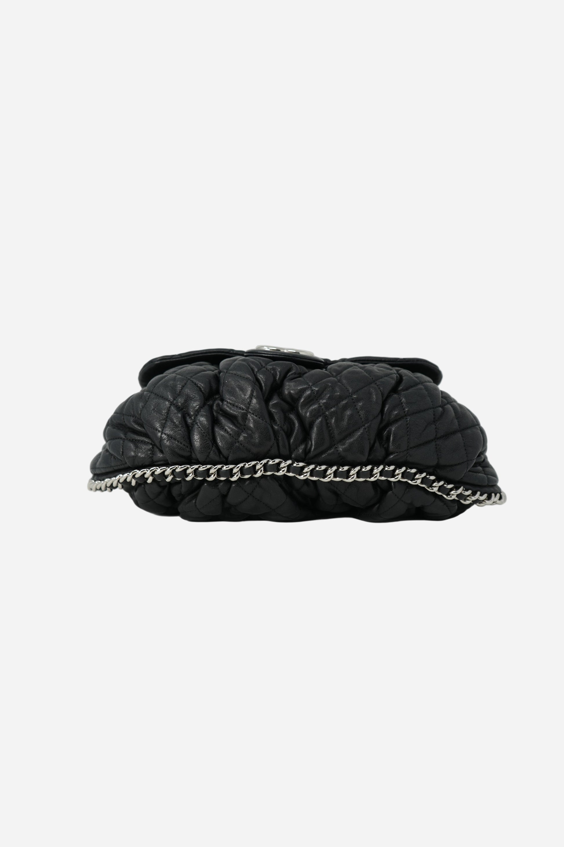 Pre-Owned Chanel Washed Lambskin Quilted Large Chain Around Bag Black