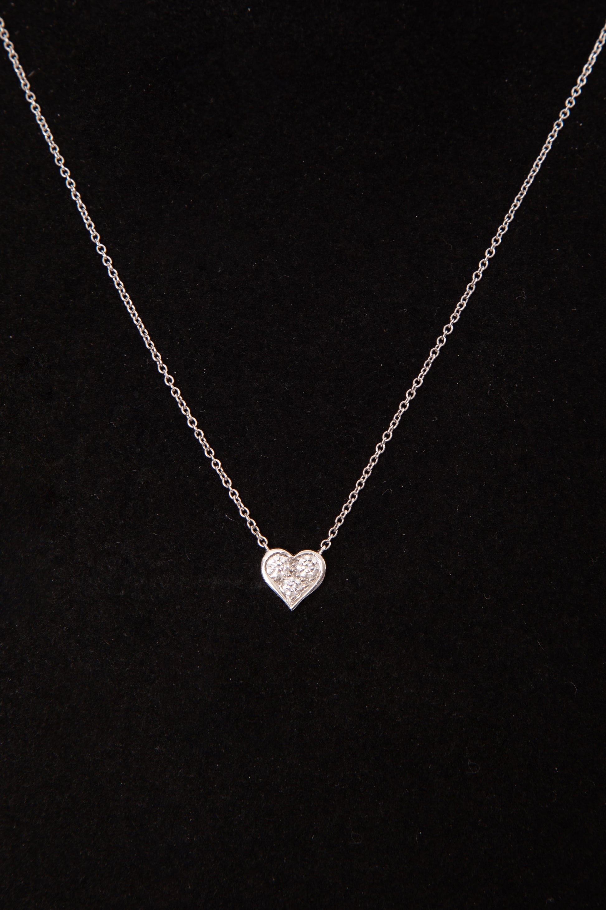 Tiffany Platinum Three Diamond Heart Necklace PT950