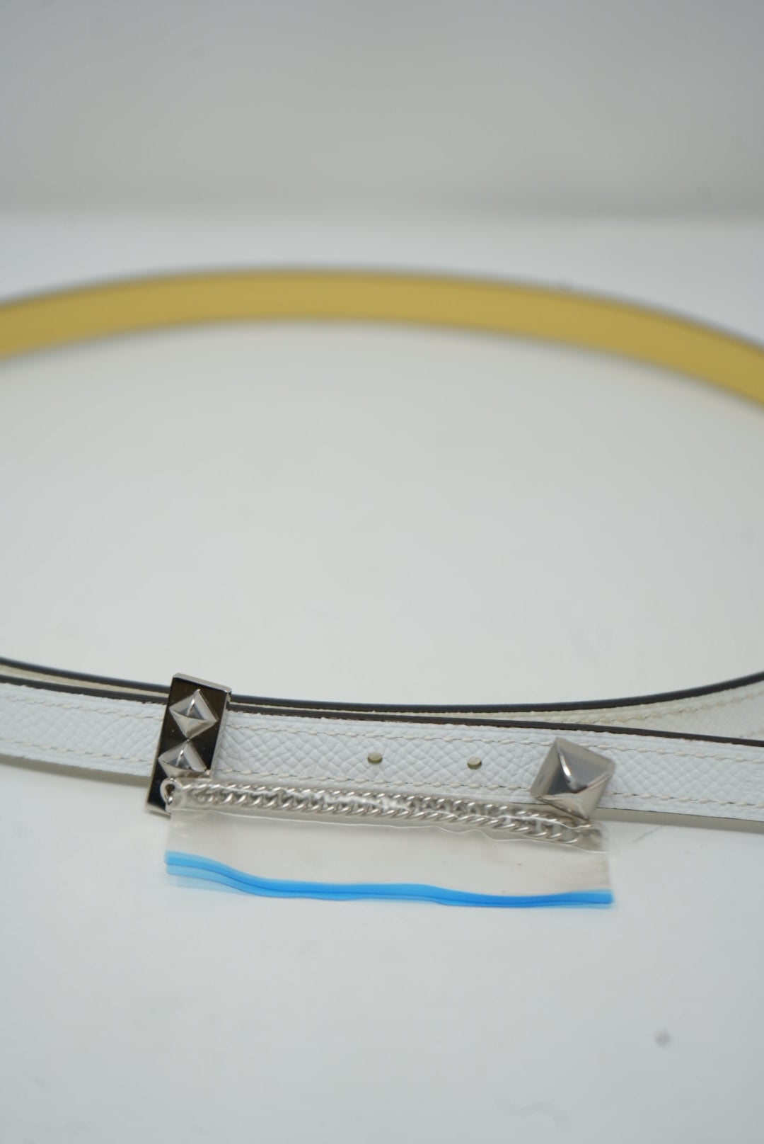 Hermes 2020 Gourmette Equestre Belt Buckle & Reversible Leather Strap Lime/White #80